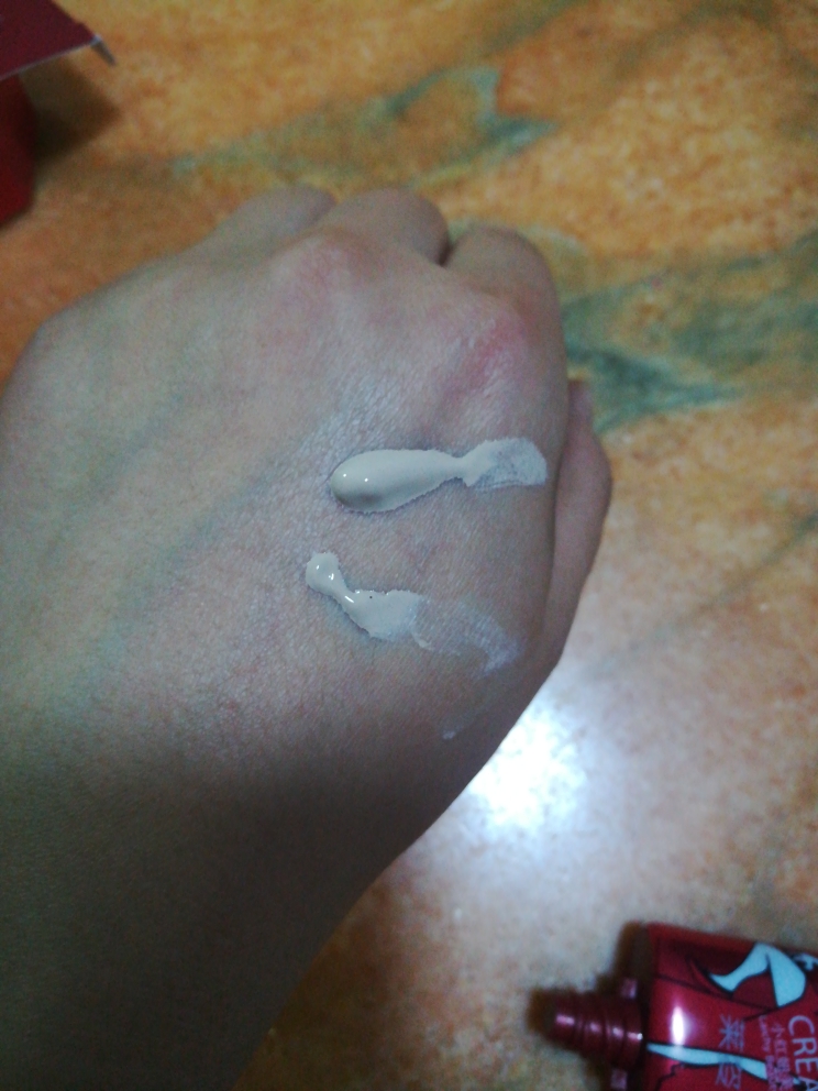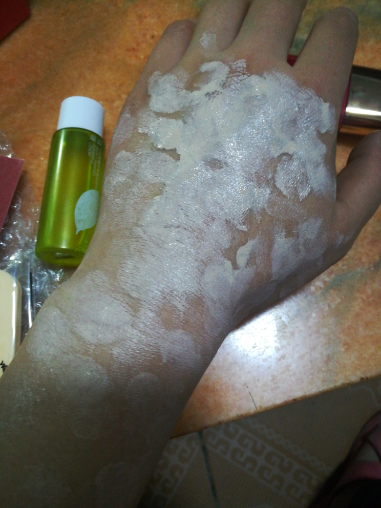 在手上试了下,可能,因为,挤得比较多, 所以整个手背看起来有点泛白,