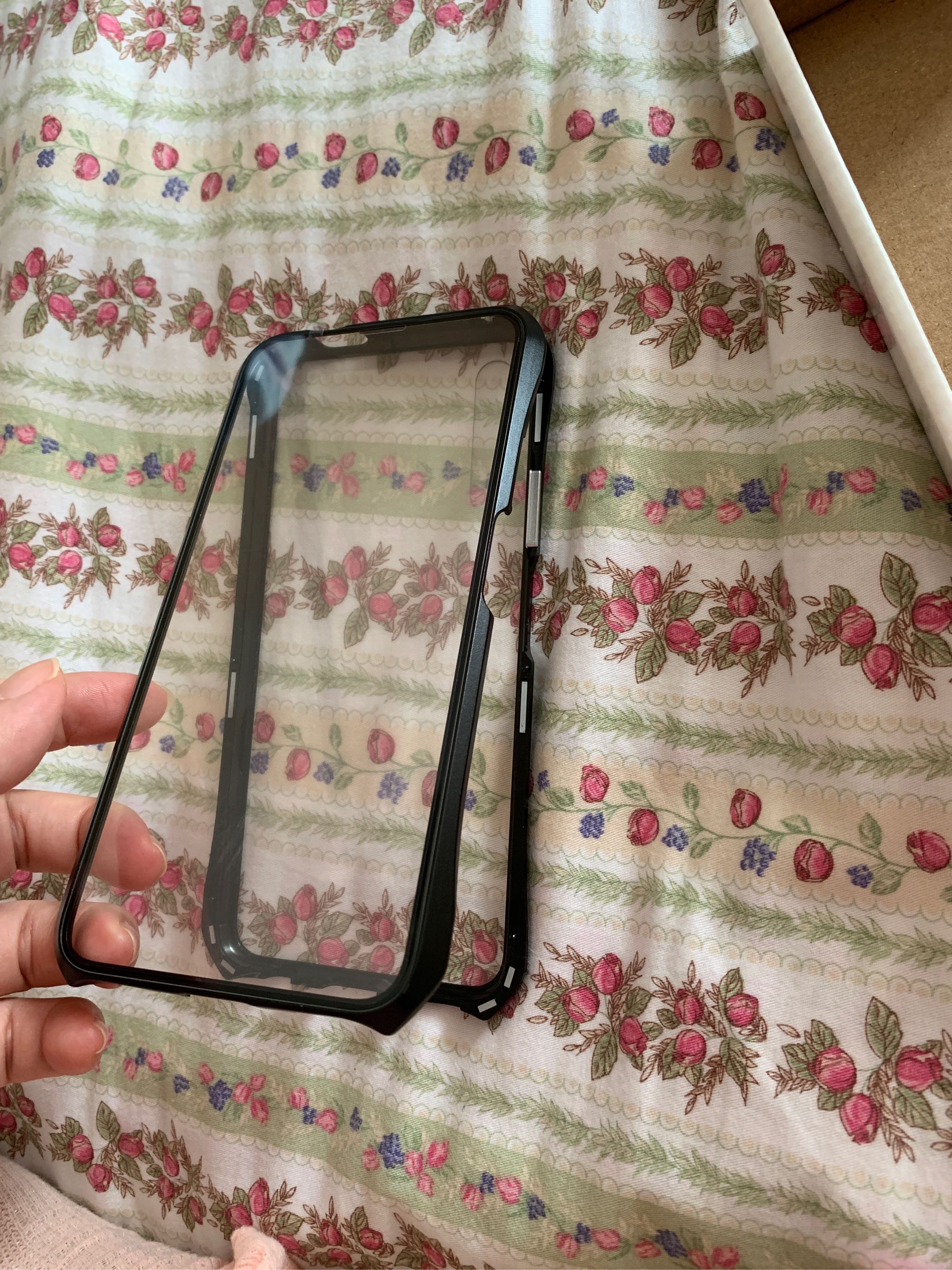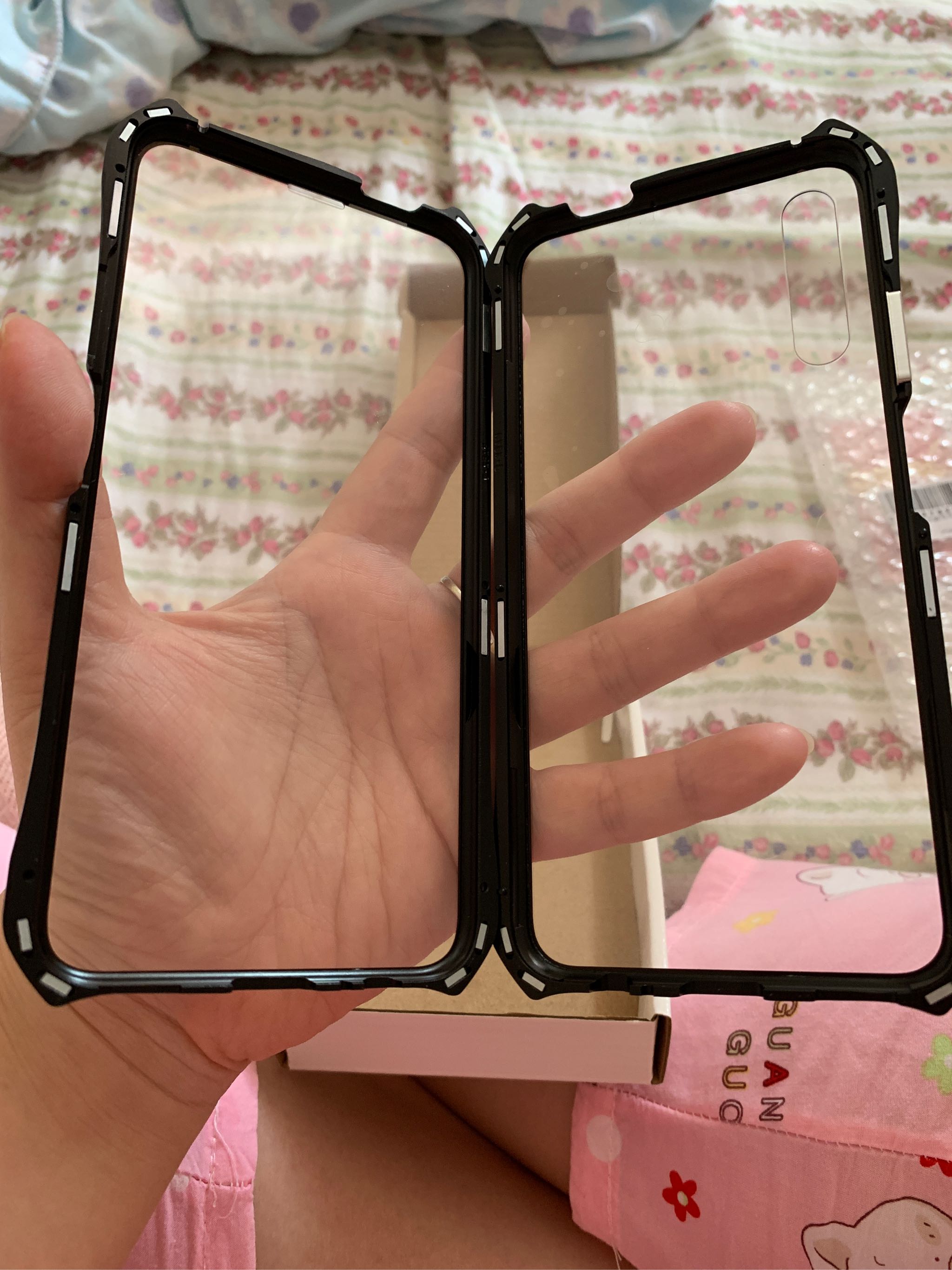 手机壳终于收到了,是黑色的,个人感觉紫色的比较好看,可能我是女生的缘故吧,哈哈哈。手机壳不是卡着手机四周的那种,是壳与壳的接缝之间有很多吸铁条,一碰上就自动合拢了。这个还是挺好的,不用担心手机边被磨破漆啦!!两面壳是透明的,材质感觉不是玻璃,像塑料,不知道保护手机程度怎么样,单独把壳从高处摔下去壳是完好无损的(毕竟不舍得把手机往地上摔嘛~嘻嘻)。与手机的契合度也很不错,总体体验之后感觉还是很不错的!