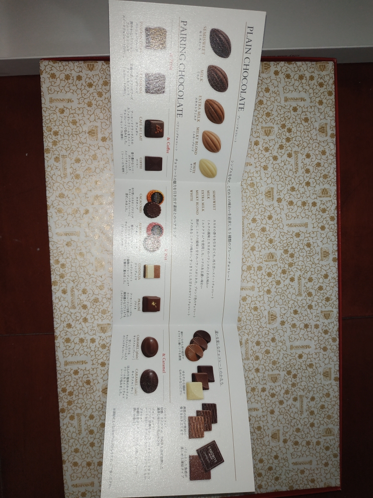 有一张小本本,介绍着这个品牌,介绍着这些巧克力,和包装盒一样的配色,摸着也很舒服哦。