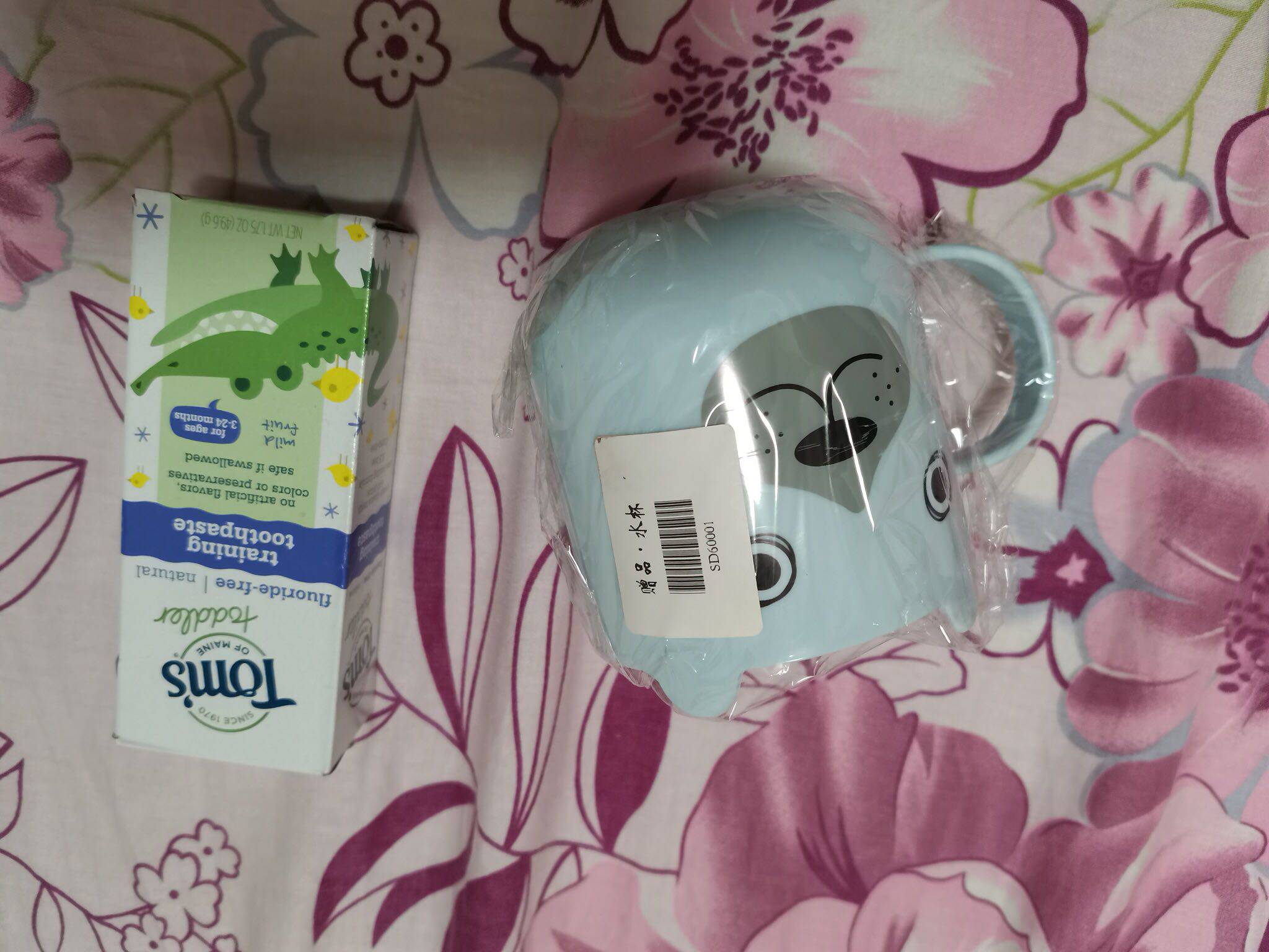 还送了个可爱的杯子!宝贝很喜欢!有时忙着带孩子刷牙洗脸都忘了拍照了,现在才来提交报告!