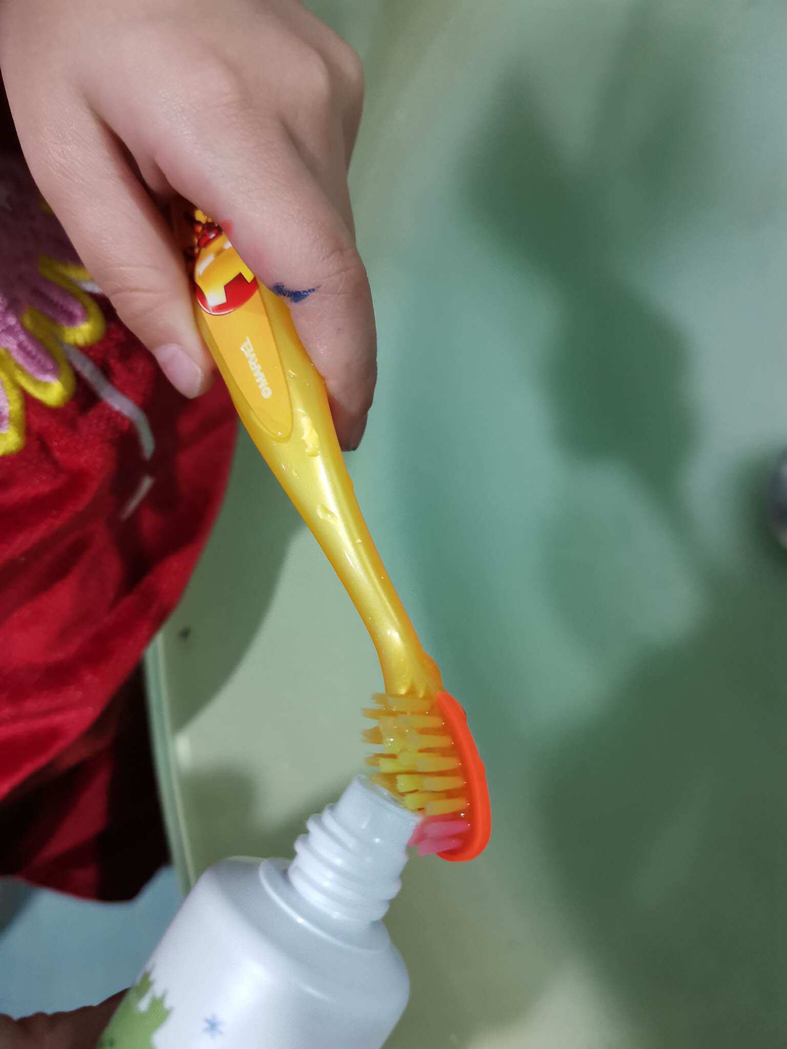 宝贝自己挤牙膏,虽然这么大了,可是国内买的儿童牙膏她还是会嫌辣辣的,这款宝贝说一点也不辣,还有香香的味道哦!宝贝喜欢就好!