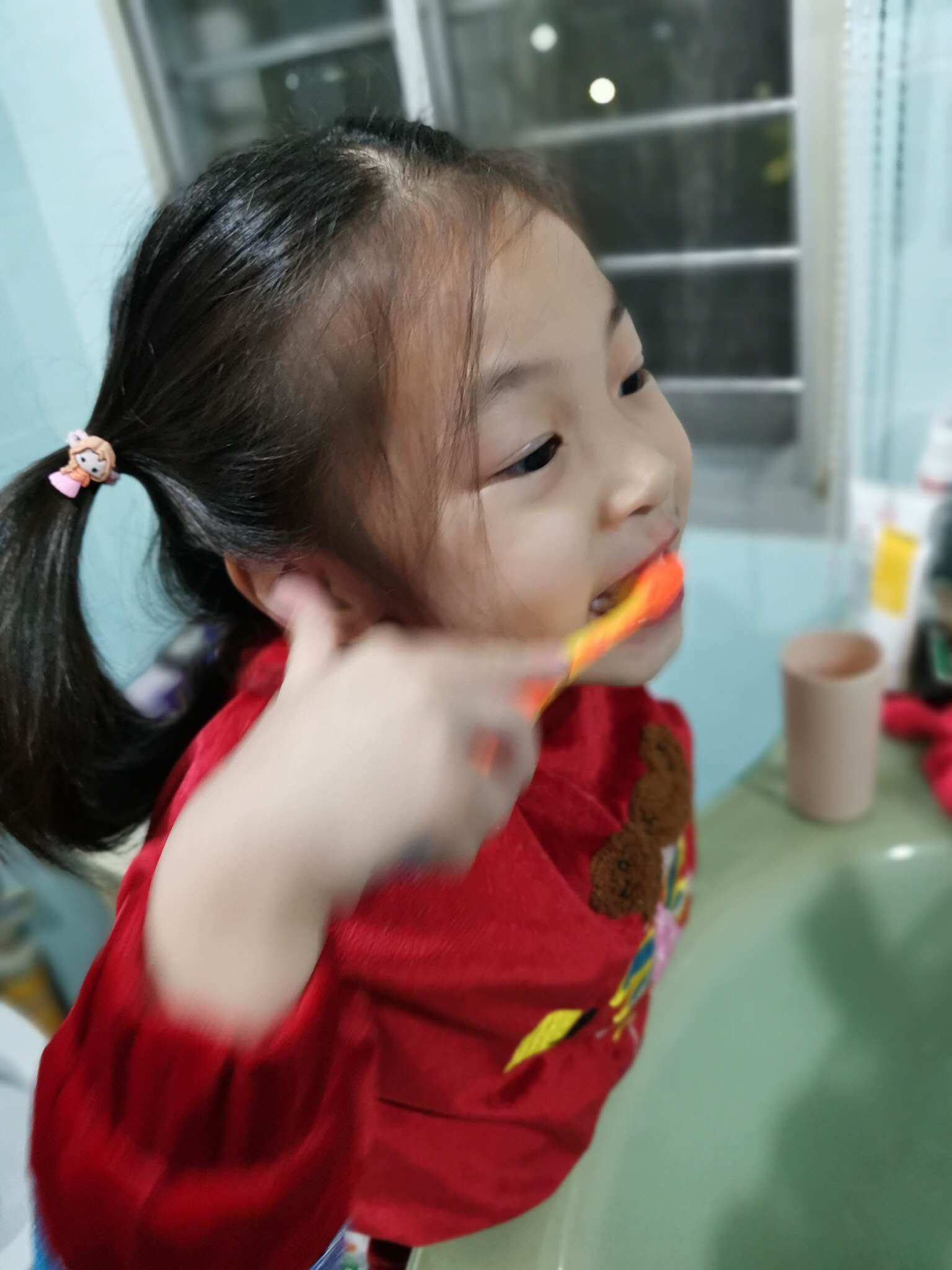 看,宝贝自己刷牙哆,虽然没什么泡沫,但是可以放心吞咽,不用担心宝贝会不小心吞下去了,可以放心让宝贝自己刷牙!