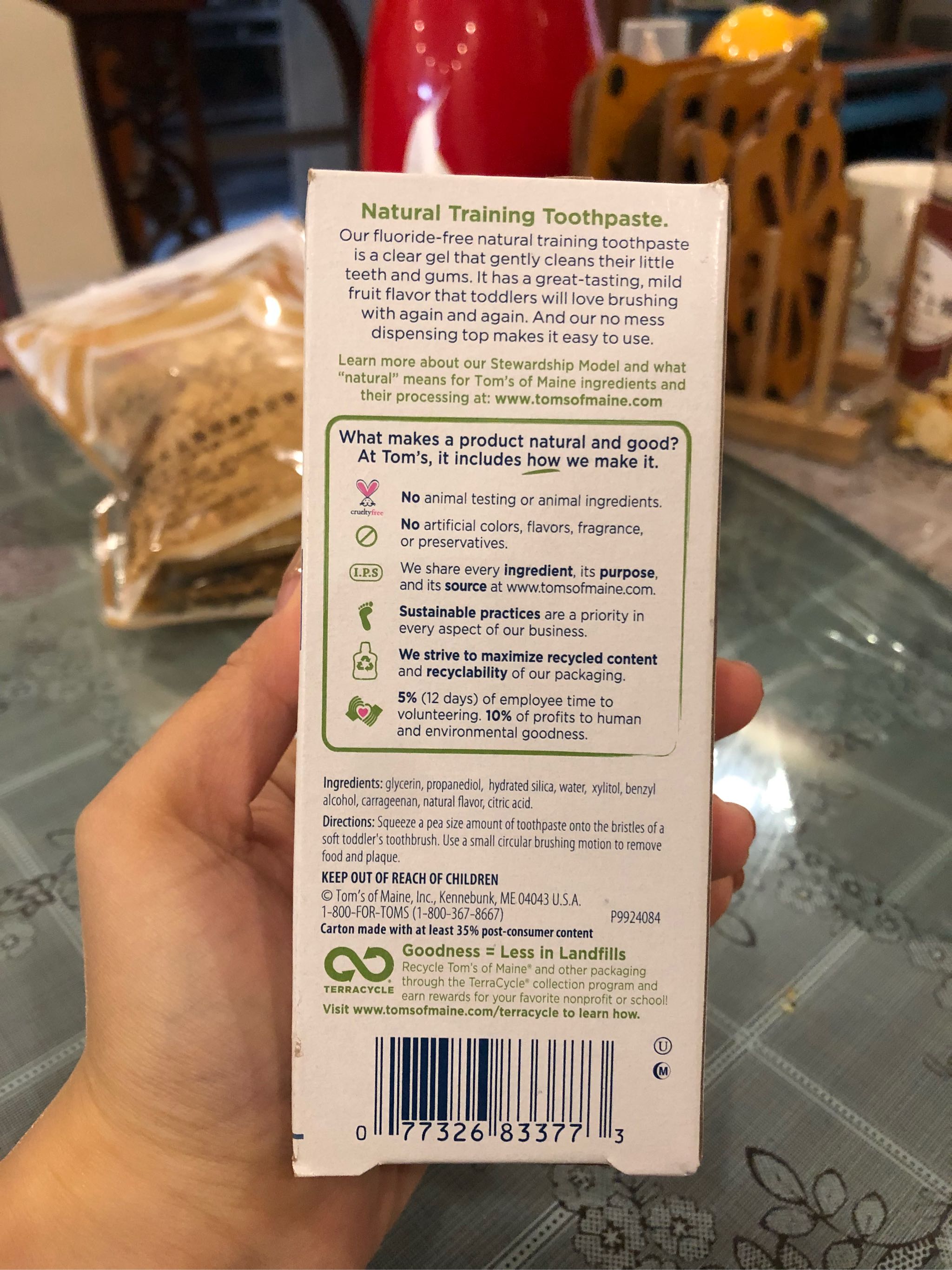 收到包裹包装很好,很严实。平常也用的这个牌子的牙膏,试用的是小支的,其实对于小宝宝来说更加实用,毕竟每次只用豌豆大小,大支真的用到地老天荒的感觉。牙膏包装盒前后是英文的使用说明注意事项,侧面有中文使用方法,非常人性化,随牙膏一起还有一个漱口杯。