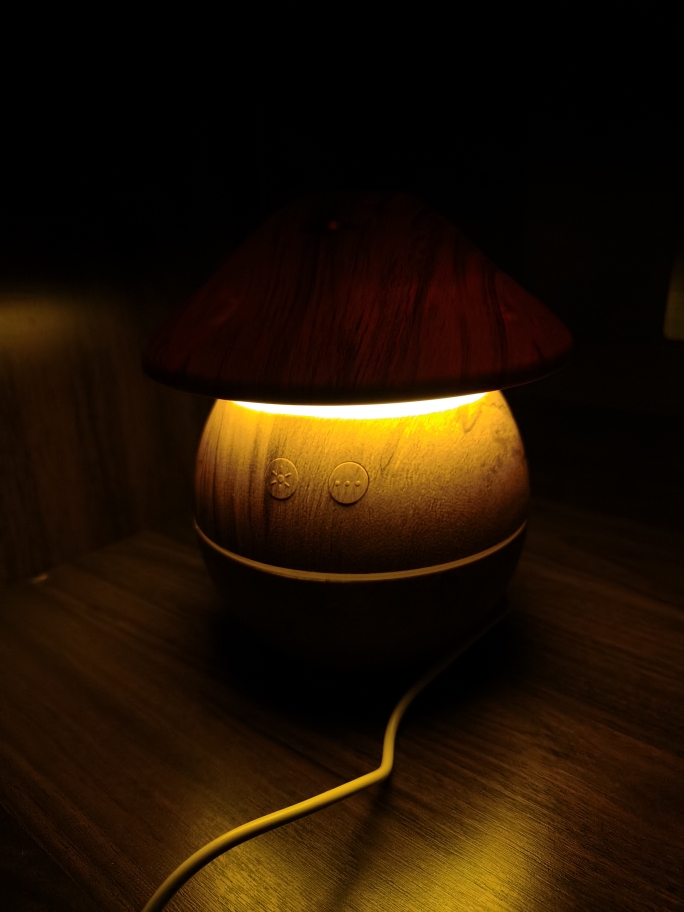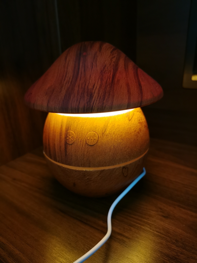 尤其在夜晚关灯后,这个小蘑菇显得尤其突出。