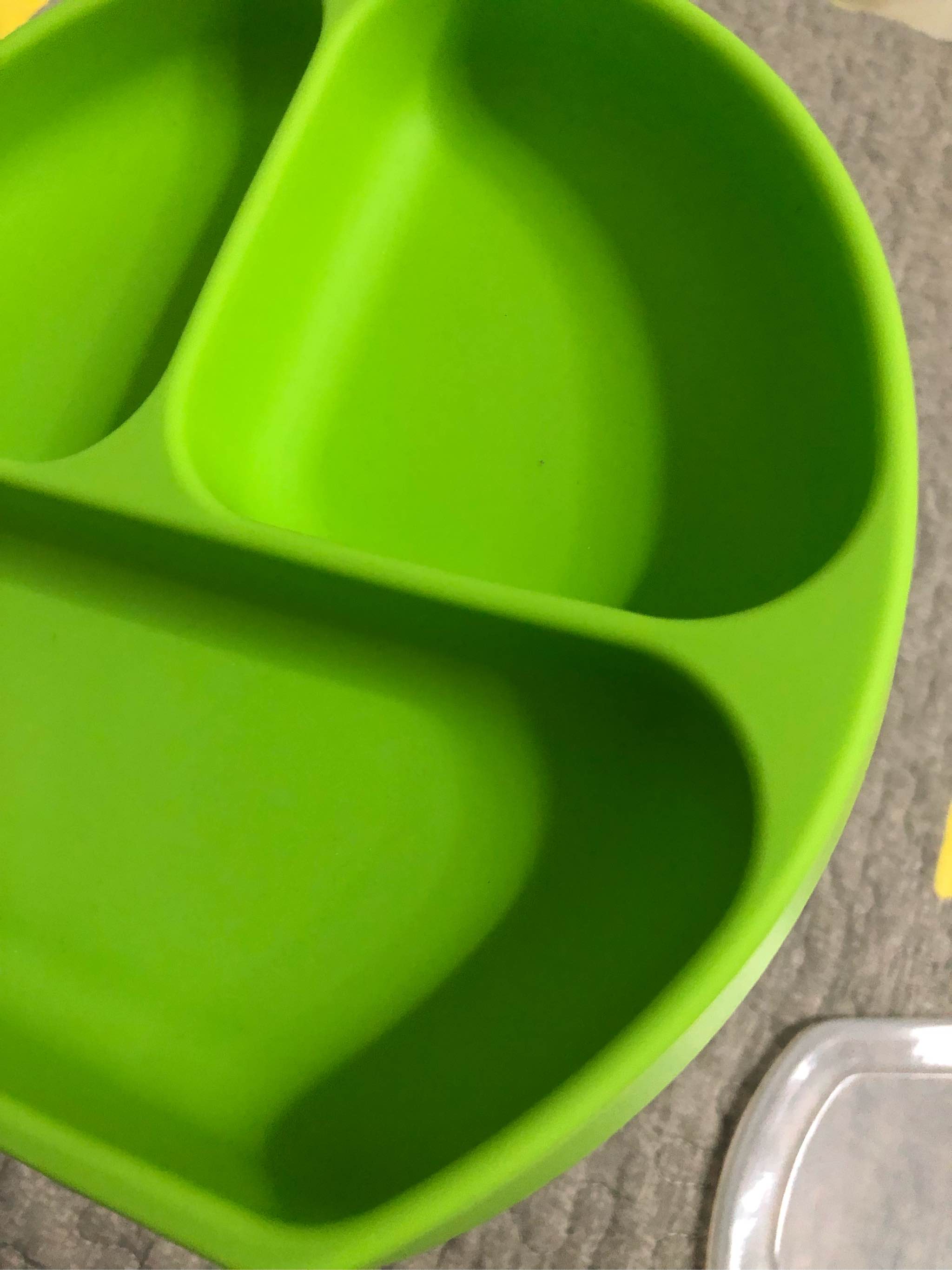 这个餐盘整体大小更好合适,分了三隔,非常方便放东西,米饭,菜,水果都可以放,再也不必担心串味了,颜色鲜艳,宝宝就是需要鲜艳的色彩。