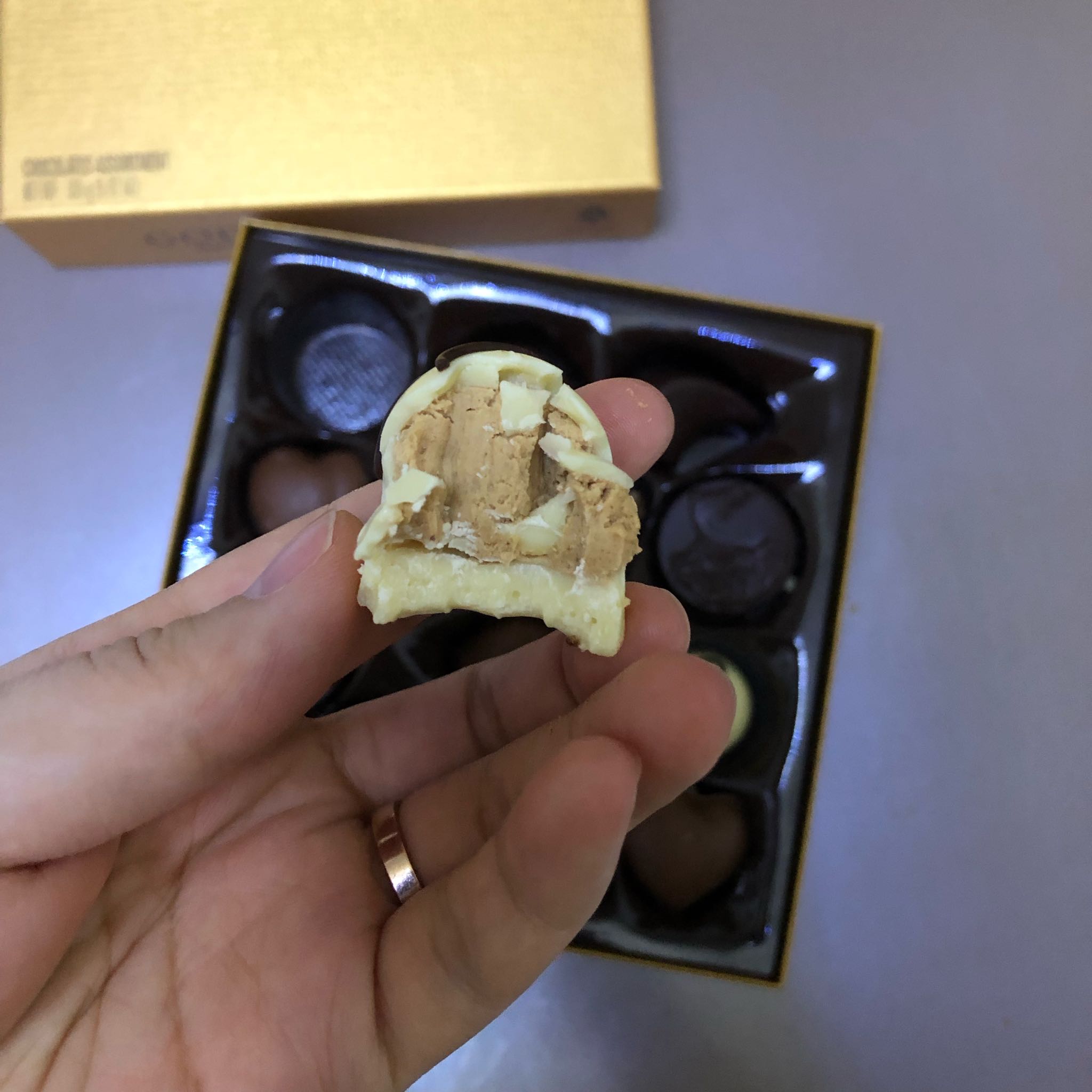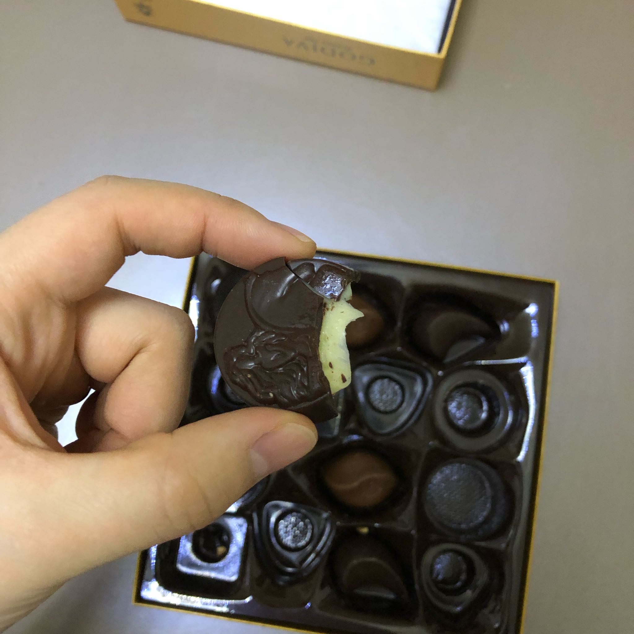 这个黑巧克力上面类似巧克力碎的感觉,里面的夹心忘记了哈哈哈哈,总之好吃