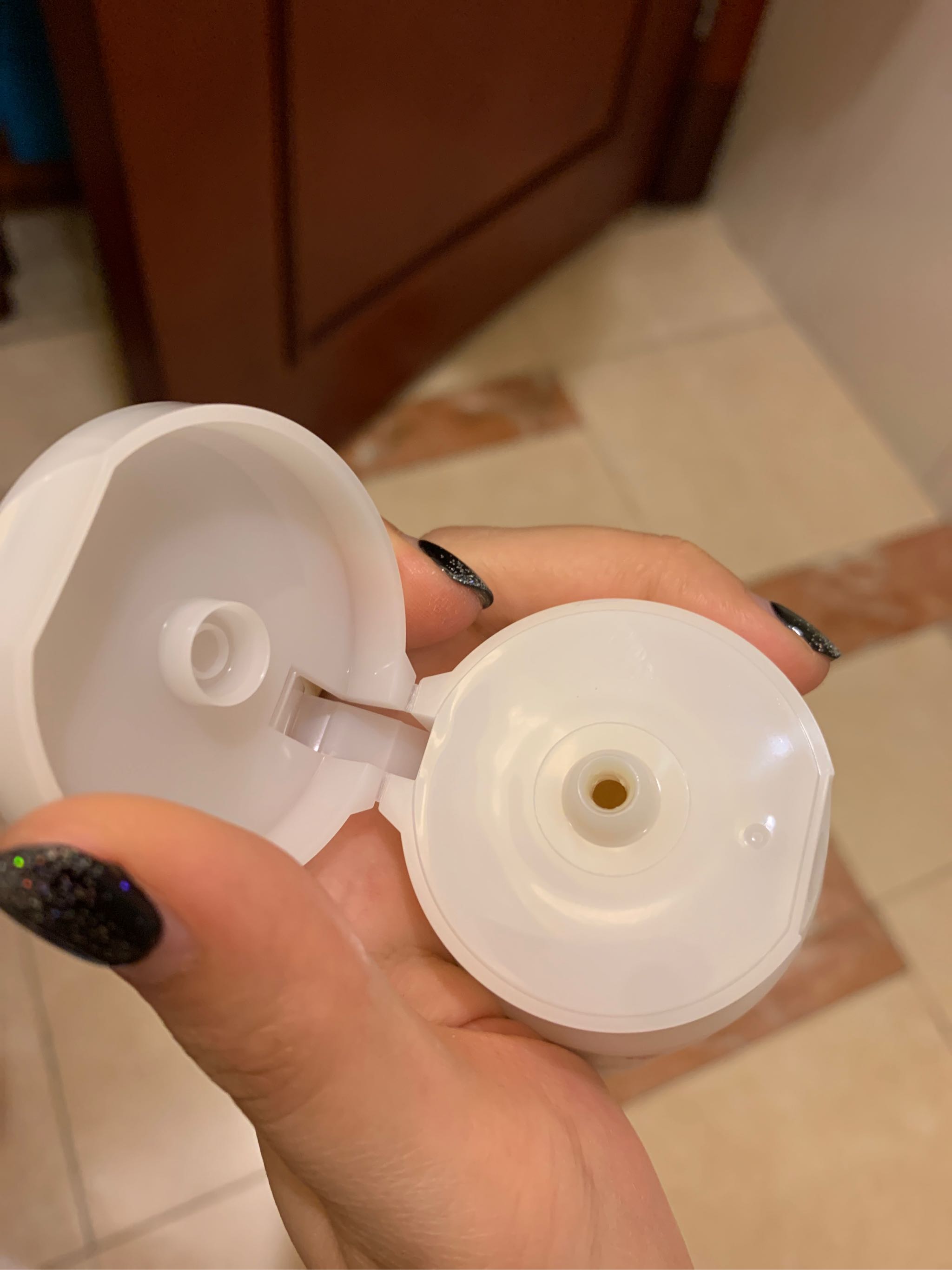 盖子很容易打开,没有瓶口塑封,不过盖子上有圆形贴纸塑封以防打开…
