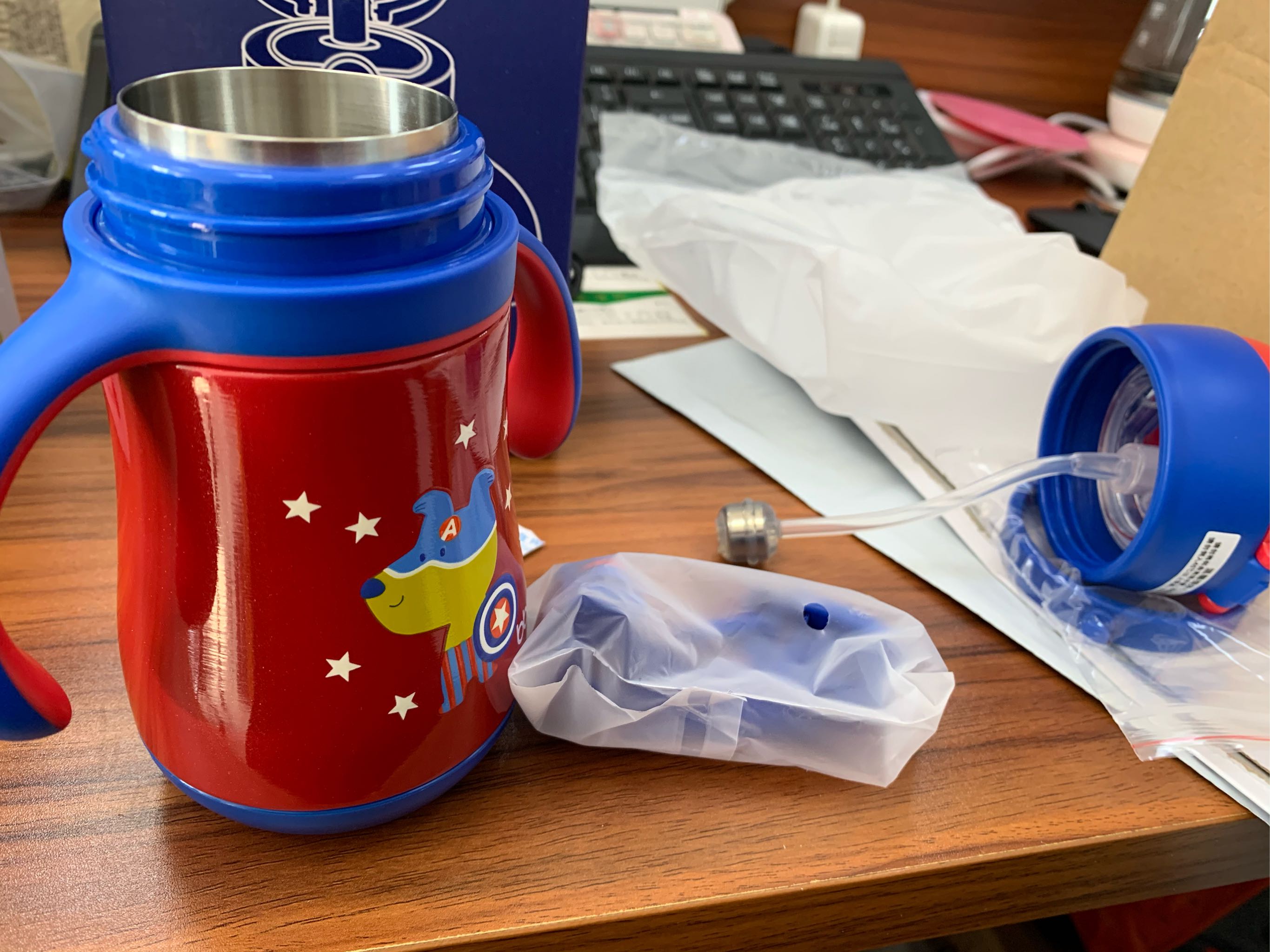 此次收件过程还颇具坎坷。初次收到这款试用的时候是奶瓶杯,由于当初选择的时候该商品名称并未写奶瓶字样,但家中宝宝已两岁,根本不需要奶嘴杯,无法作出良好等试用评价,后与客服商量多次终得圆满落幕,自行邮寄回去,重发吸管杯。 说实话,收到后的吸管杯真的不错,虽然容量不大,只有200ml,但保温壶本就是装温水,小朋友也不可能等热水变凉,外观和内里我们都非常满意,质感很好。