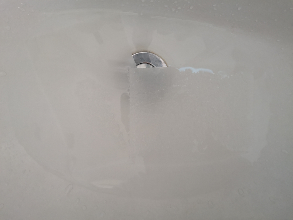 取了一片速溶纸和一片普通厕纸,放入水池里。