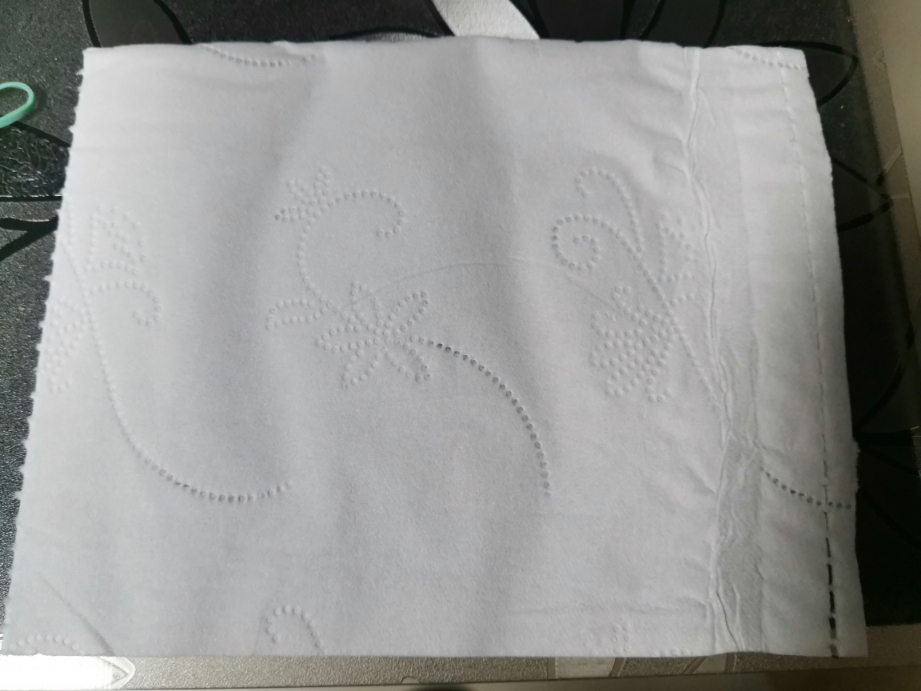 开卷厚实有印花,纸面柔软无脏点,纸质细腻无香,嗯,和平时用的卫生纸没有什么太大的区别。