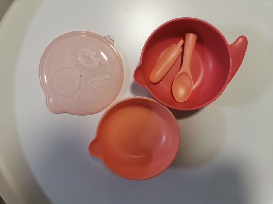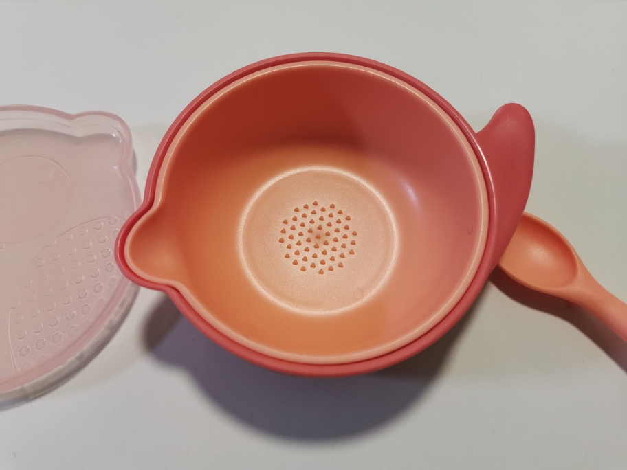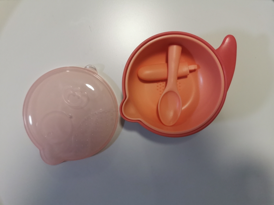 宝贝收到了,造型很可爱,双层碗设计,盖子能盖紧,勺子拼接设计,拆开能放入碗里,方便外出携带,