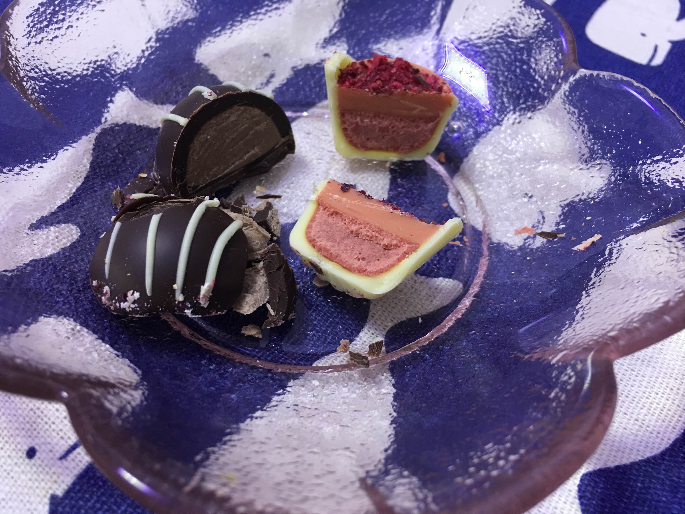 一打开就尝了俩个,非常好吃,不是那种甜腻的巧克力,吃起来有果味,而且不是很甜,都是可可的香气,黑的稍微带一点点苦,特别好吃,我很喜欢