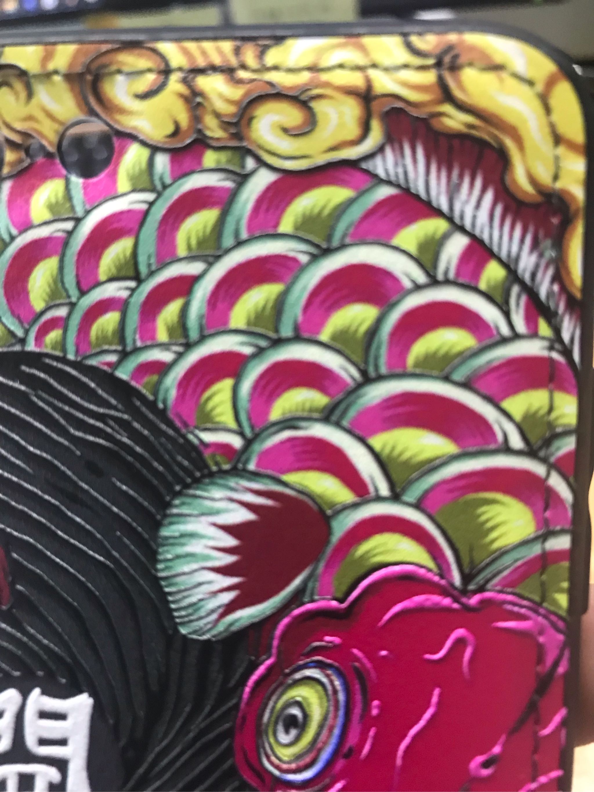 优点:皮质感觉不错,中心区域是软的,保护手机,也不滑,颜色和图案比较饱满,冲刺整个背面
