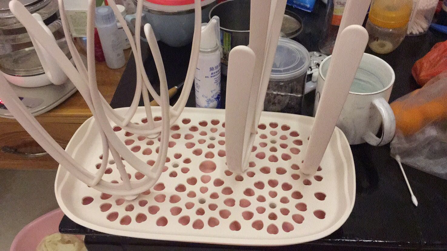 奶瓶架挺大的,一共四个支架两个底架,可以把多余的水渗下去,挂的东西也挺多的