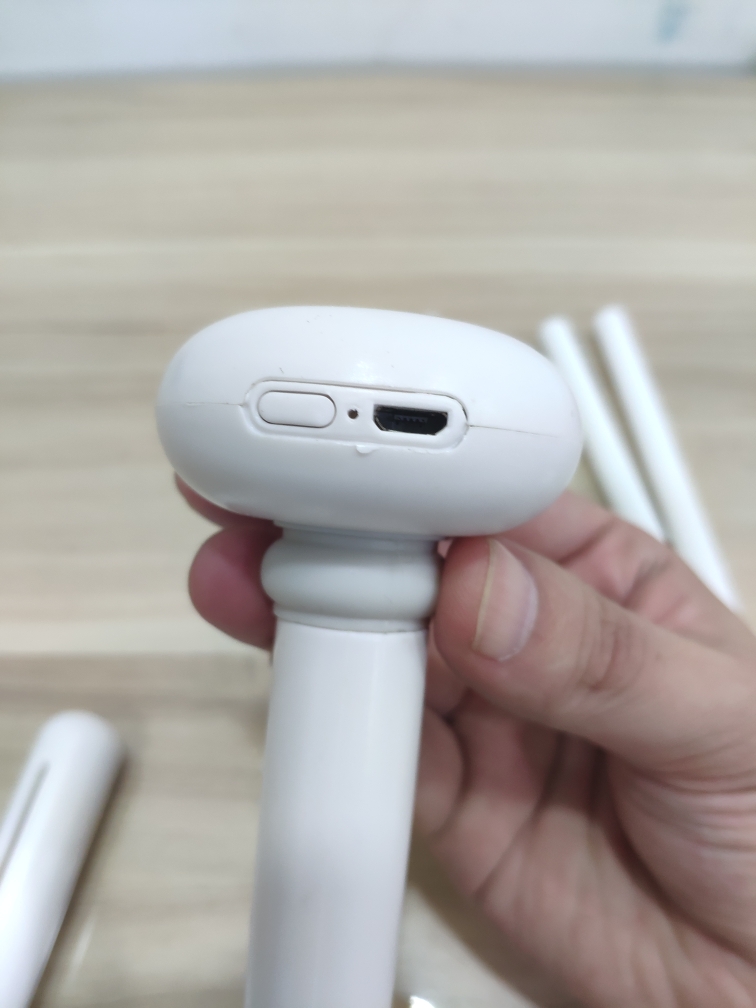 ‘蘑菇’头的侧面是开关和USB充电口,刚插上电源的时候会亮一下。