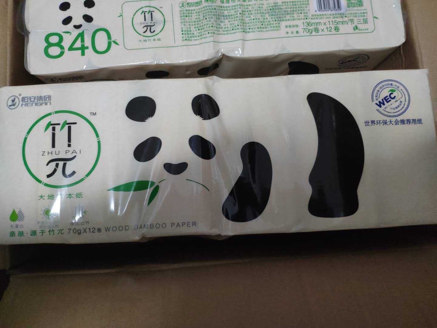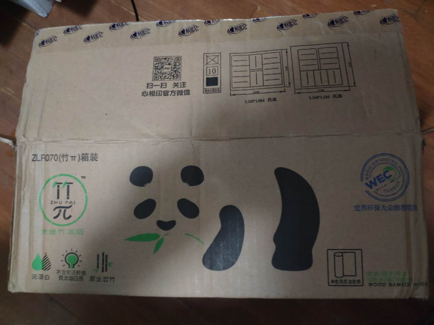 提交试用很快就收到了这箱纸,36卷共三提,包装很好。熊猫最爱的竹子做原料。