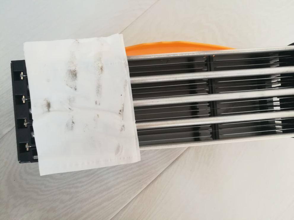 机器除尘效果:静电除尘效果很给力,这是使用5h后的效果,可见明显的灰尘吸附在滤网上面。