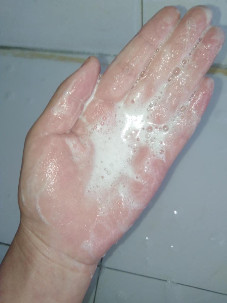 如图为用量一浆洁面的泡沫,泡沫细腻丰富。上脸感觉温和,洗完后脸滑滑的,很舒服。