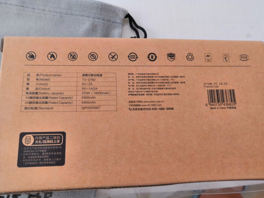 品胜个性签名移动电源,实用且有颜值有个性。白色很干净,整体很满意
