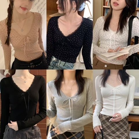 DH美式纯欲辣妹长袖T恤带胸垫性感女秋季洋气上衣修身内搭打底