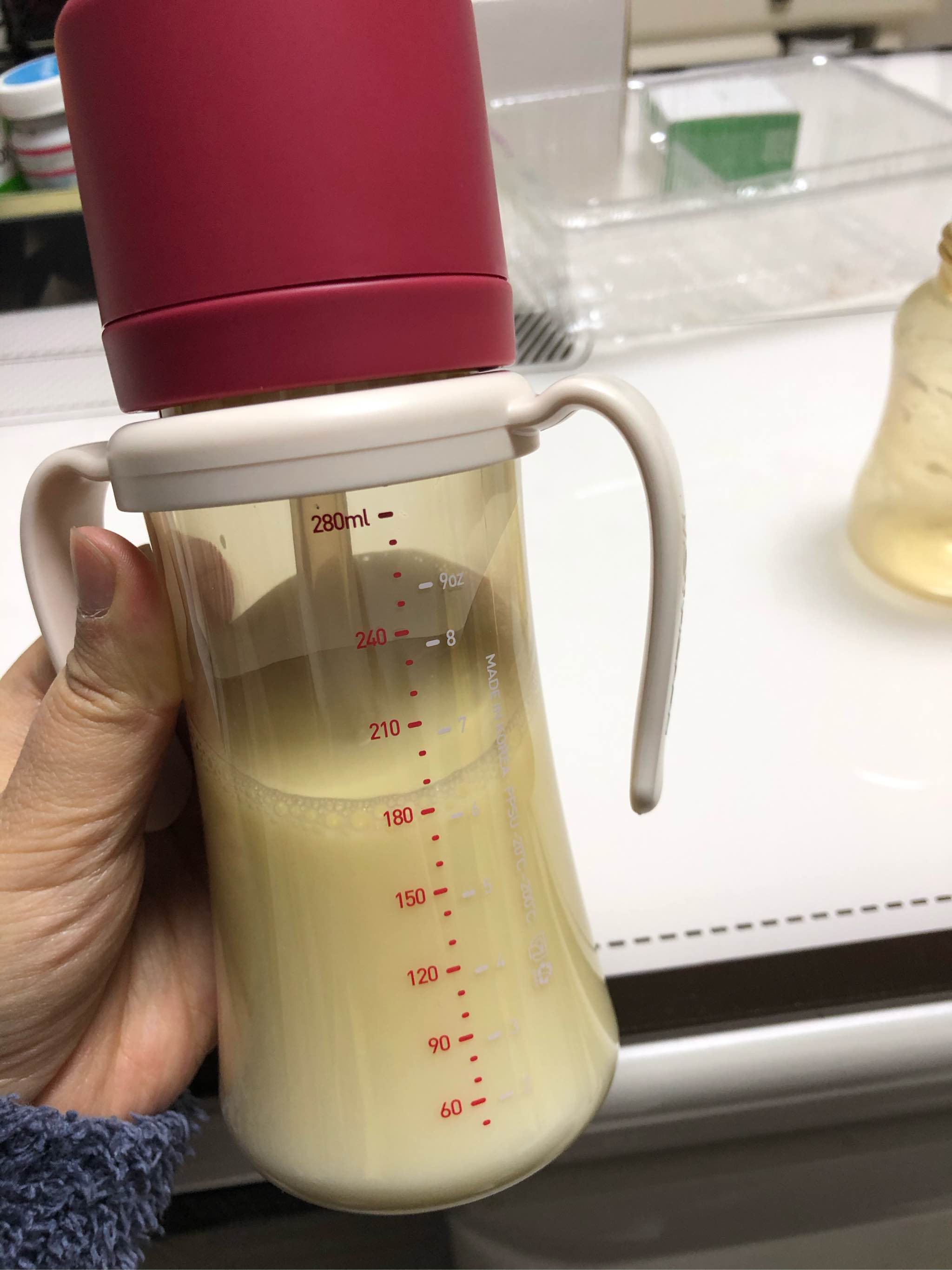 奶瓶非常轻巧,颜色也非常漂亮,红色的很适合宝宝,宝宝现阶段正好很喜欢看红色的东西,非常喜欢!