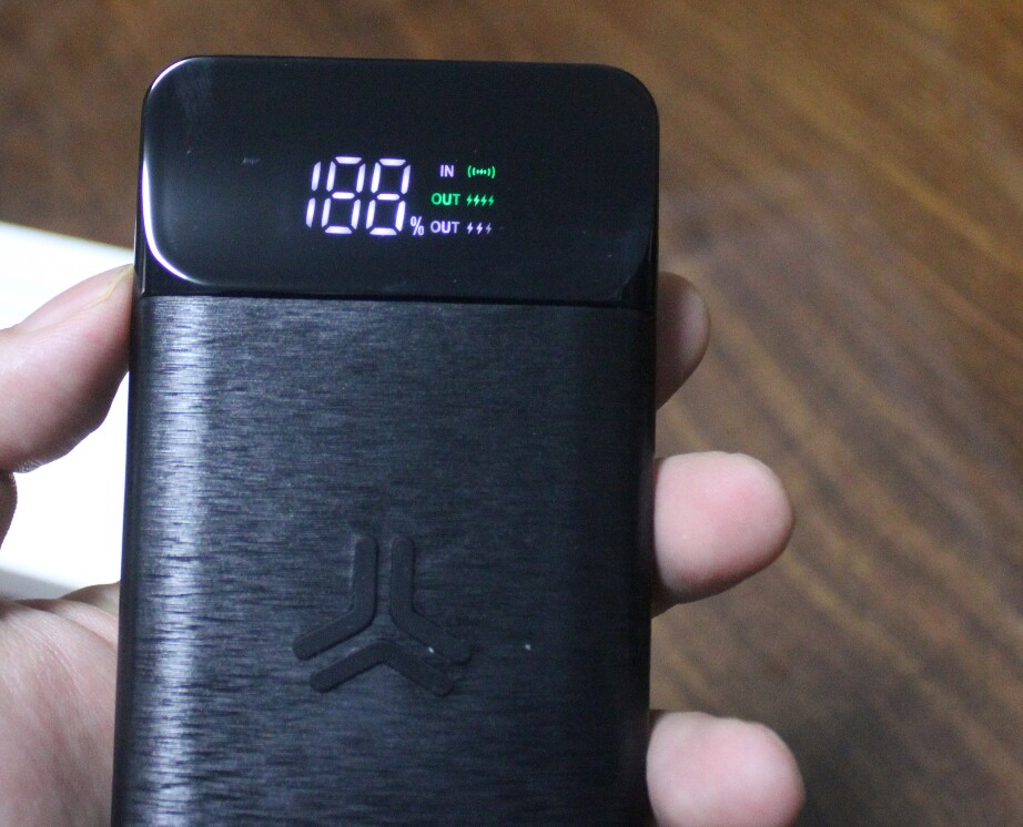 按开机键后是自检模式,最上面的图是无线图标,这正是这个充电宝的另一个亮点。支持10w的无线充电,给我们的旅程带来很大的便利,而且充电时间比较快,我的iphone8p用无线充电实测二三个小时,比原配的1A充电器快了不少。