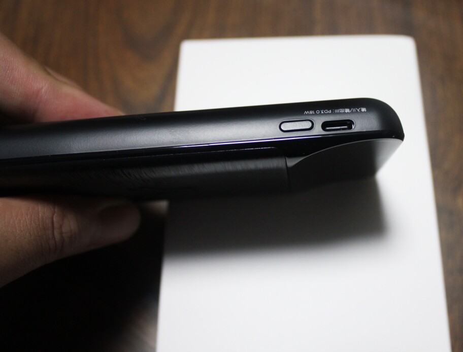 侧面是Type C 接口和开关,不要小看这个接口哦!这个充电宝的一大亮点,支持双向充电,也就是可以给手机充电也可以给充电宝充电,而且是5v、12v、18v一孔通吃,实现安卓和苹果的快充,科技感十足。