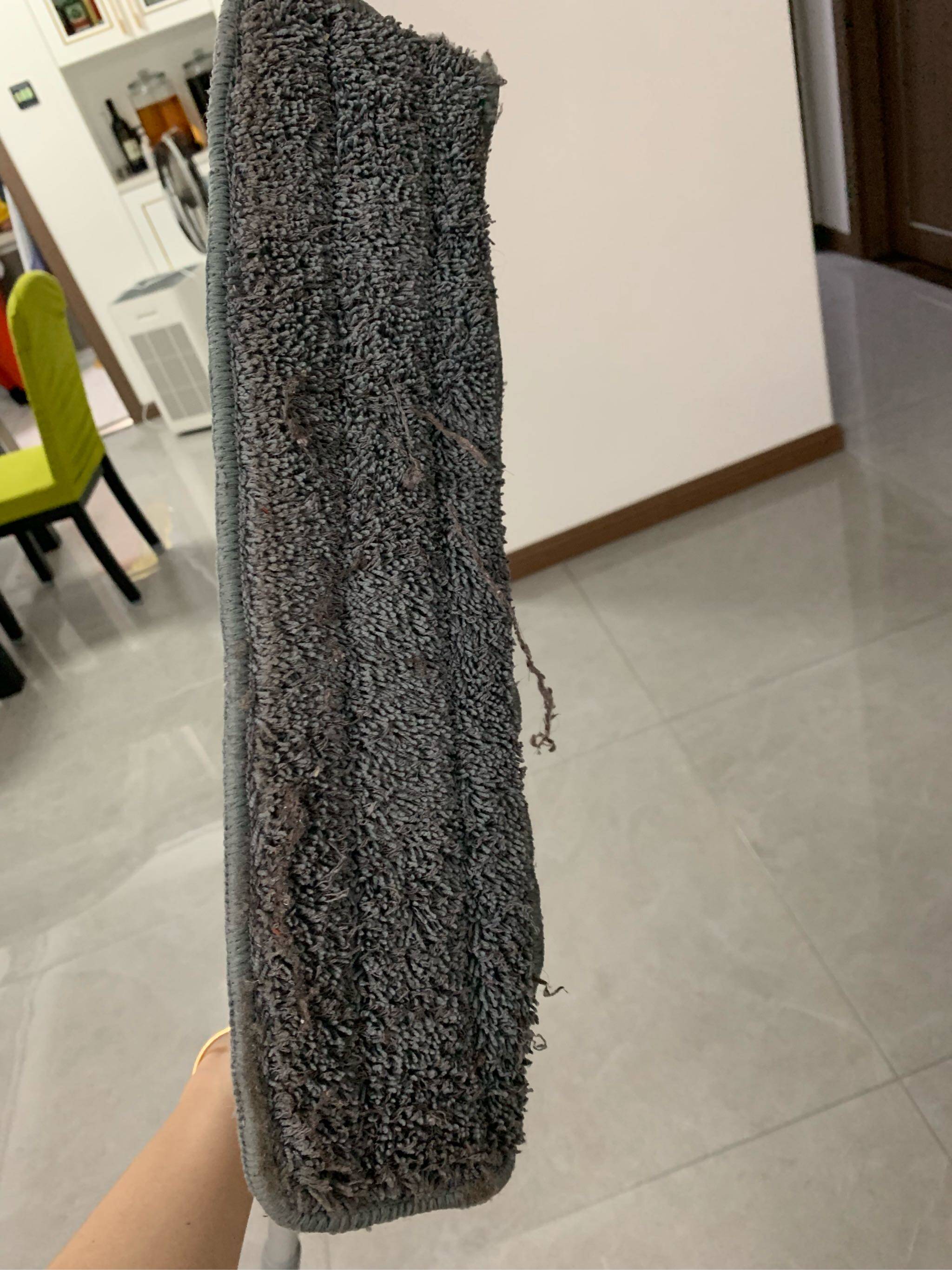 缺点:清洗比较麻烦吧,没有桶可以洗和甩干,只能手洗,不过手洗也有好处,就是可以自己拧的干点,拖起来不会那么湿,有水渍印了