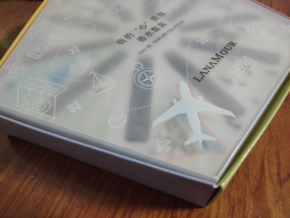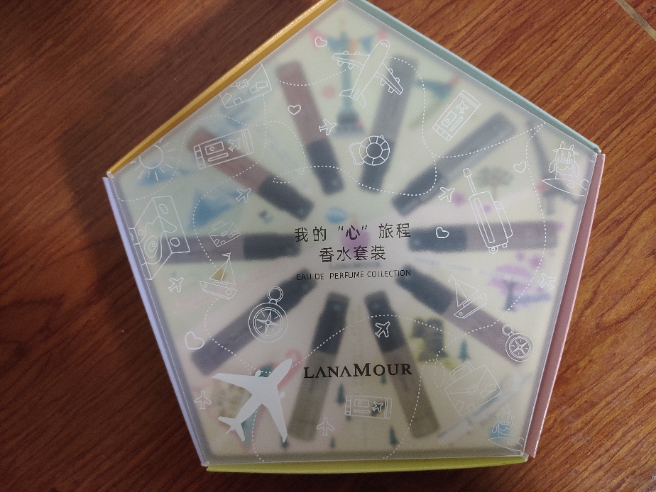 刚拆开快递,拿到的包装是这样的五边形,里面的小分装香水等距离摆放,像一盒精美点心