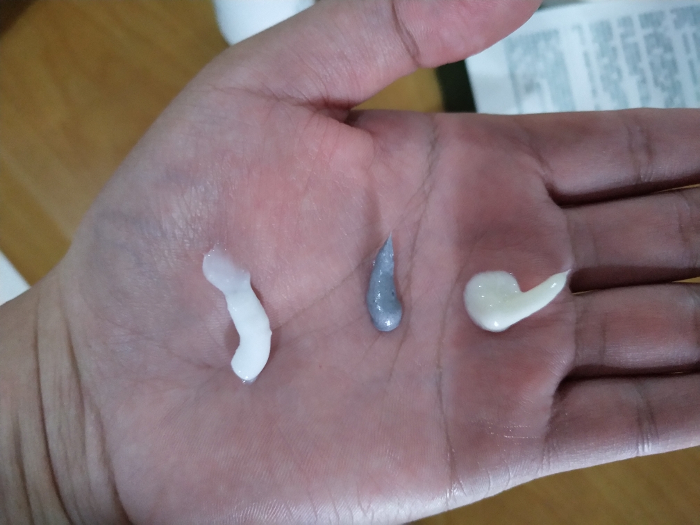 图中是画白和我常用的另外两款洗面奶。 左侧:试用产品,相对我常用的另外两款洗面奶来说,比较稀,没那么浓稠,且产品中有颗粒; 中间:国产某品牌洗面奶,三者中最浓稠,不太细腻; 右侧:国外某品牌洗面奶,细腻,三者中居中。