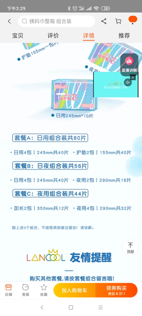 快递:邮政 用时:2天 套餐:A套餐 日用40p+护垫40p 需要夜用的要记得备注其他B或C