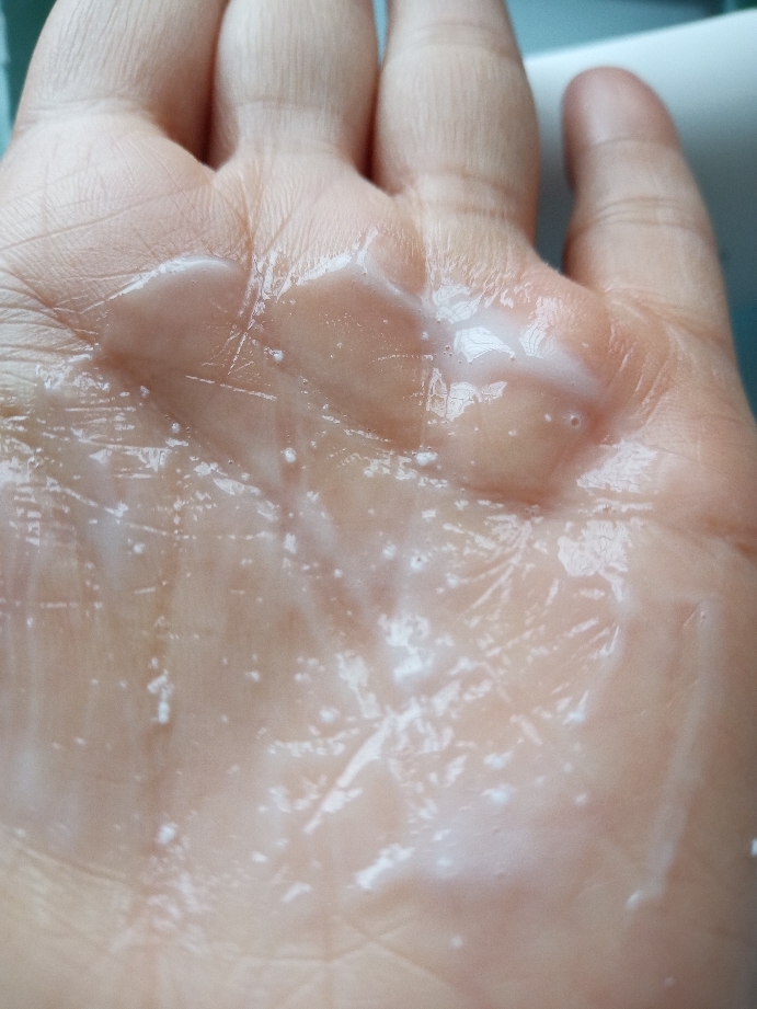 膏体不算粘稠,双手按摩会有一些颗粒感。