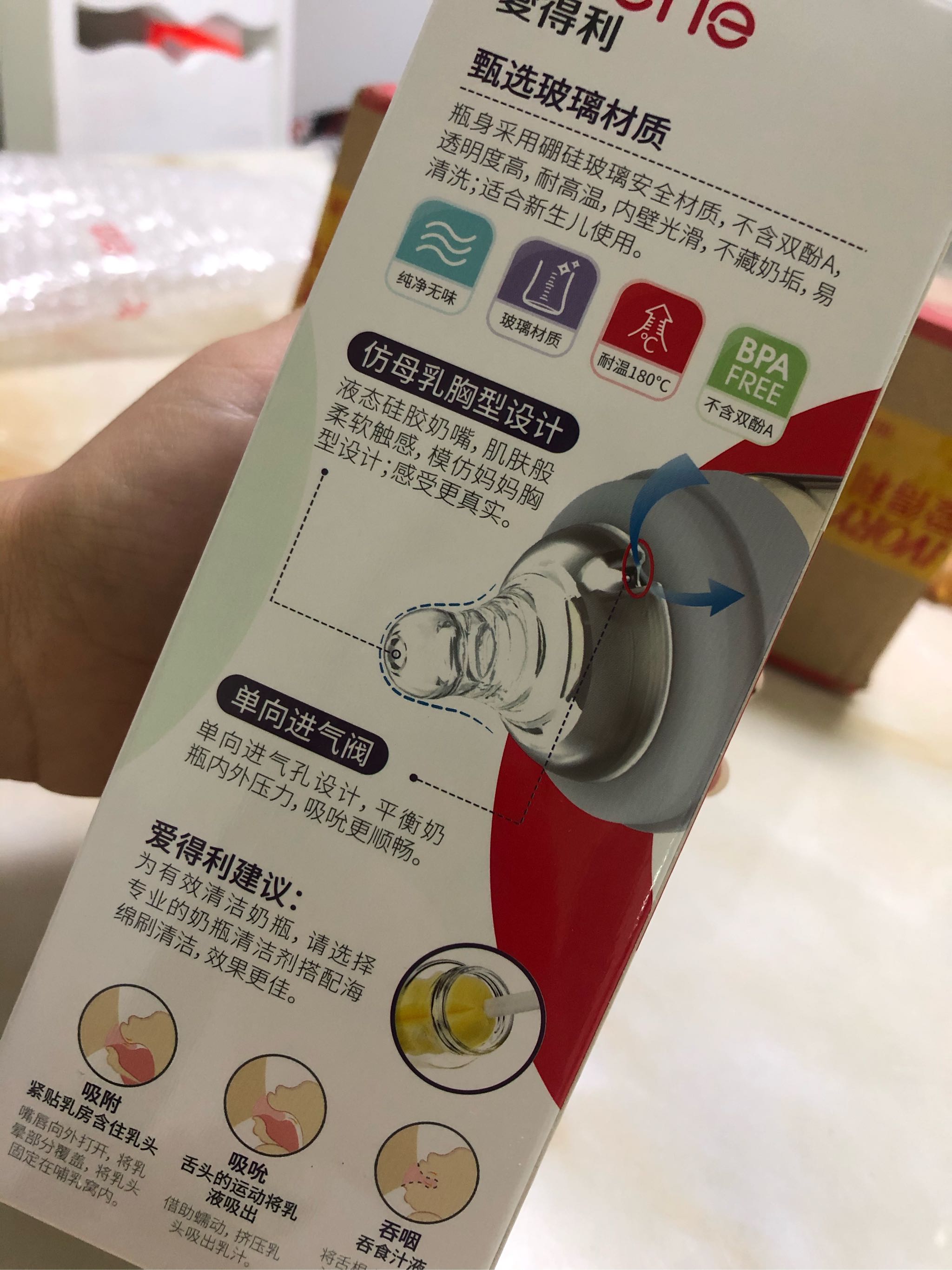 物流很快,包装很好,用得是旗舰店专门的箱子,里面还有防破裂膜。奶瓶的质感很好~宝宝用得肥皂看上去很好用