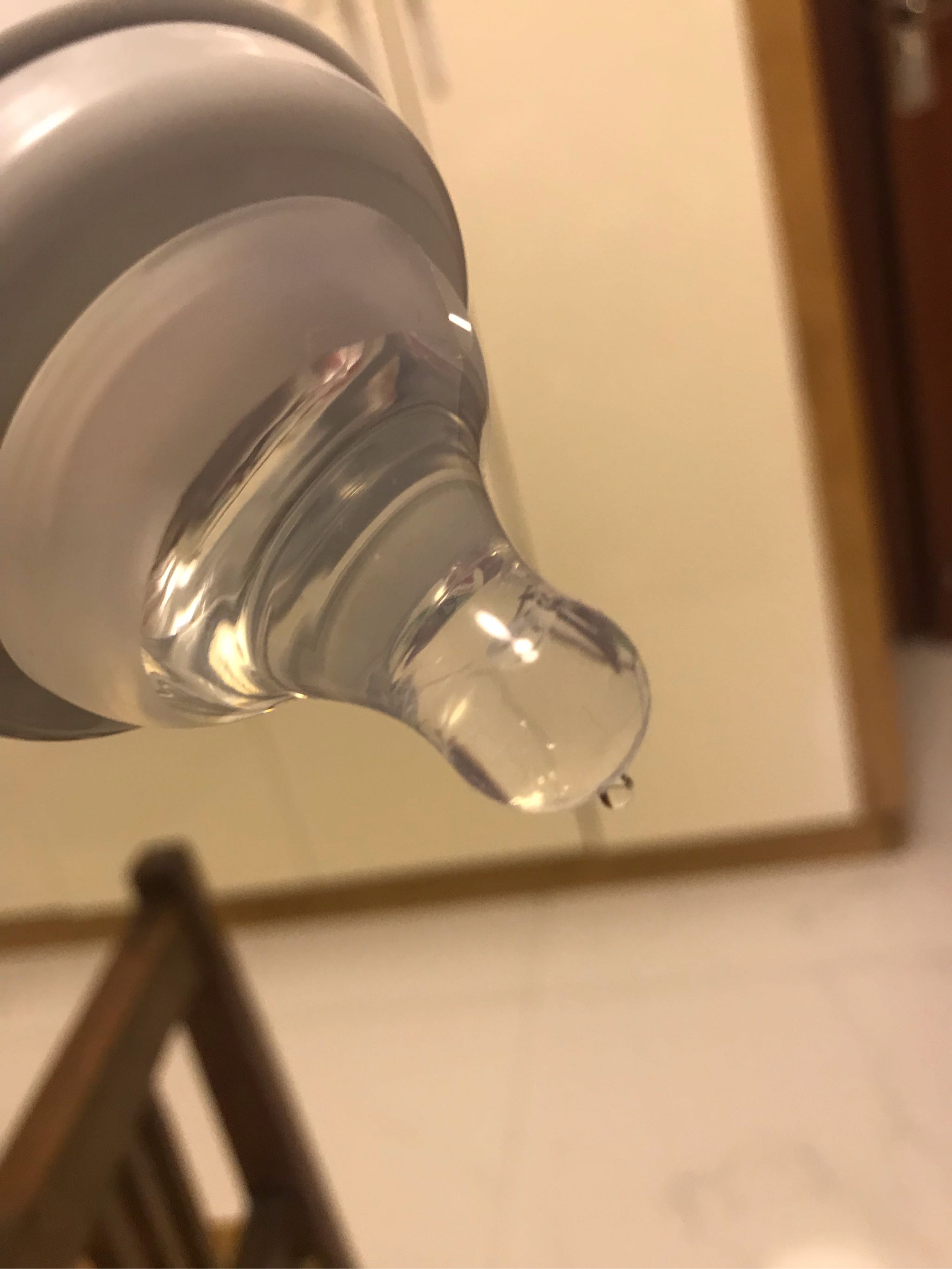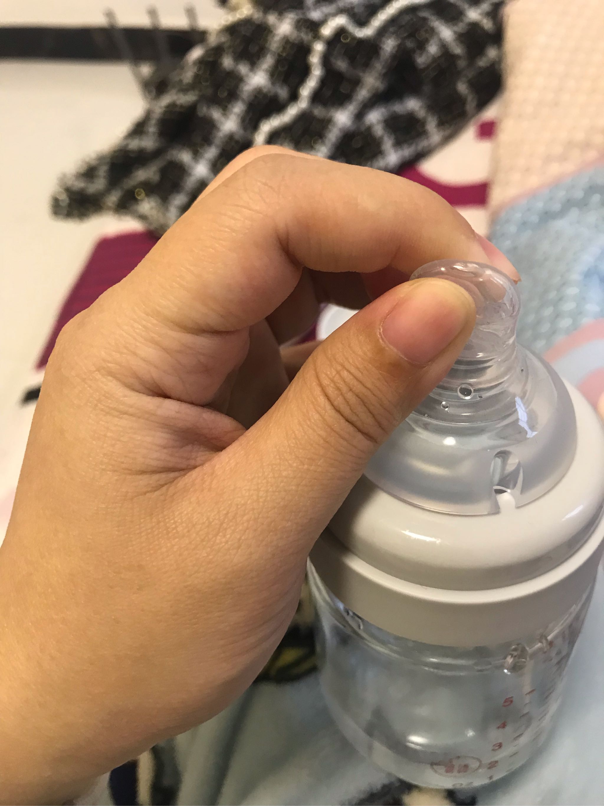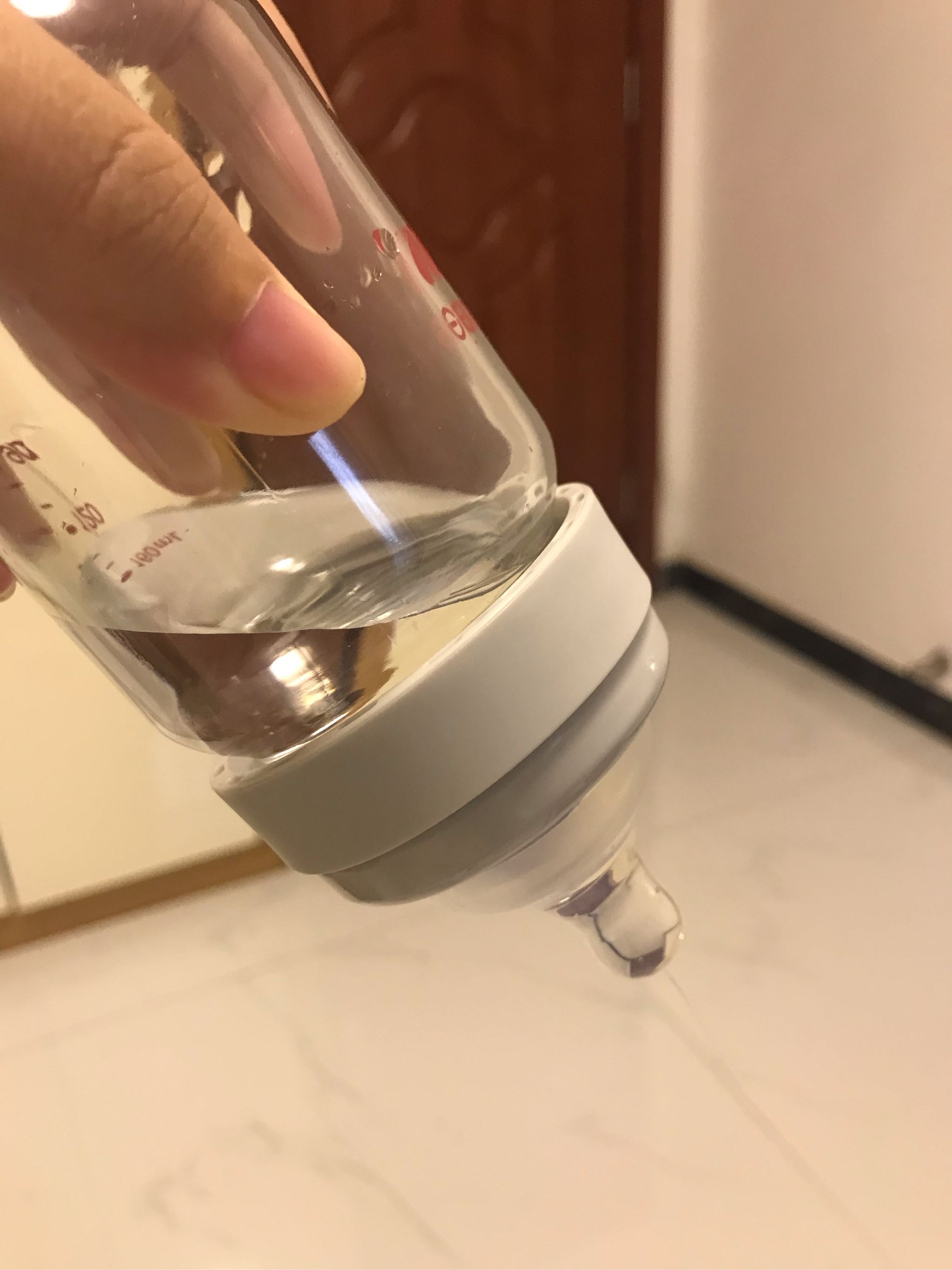 我装了些水试了一下,我没有用力拧,瓶子还是很紧密的,不漏水,不用担心吃奶的时候会漏一身,奈斯!