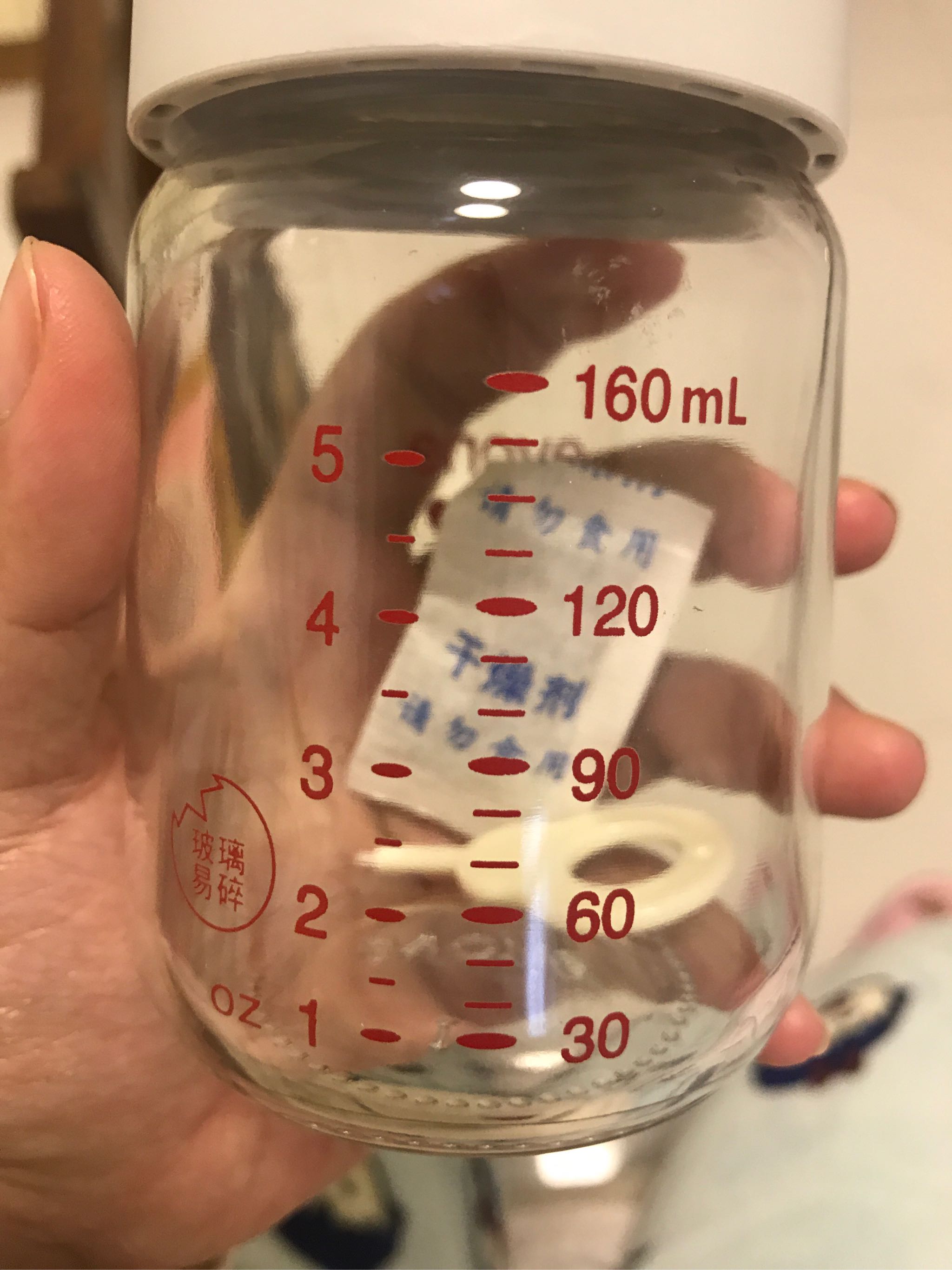 160毫升,适合新生儿,玻璃瓶身安全无毒,没有气味,瓶盖很可爱,扣的很紧实不用担心会进脏东西,红色刻度设计,看的很清楚。