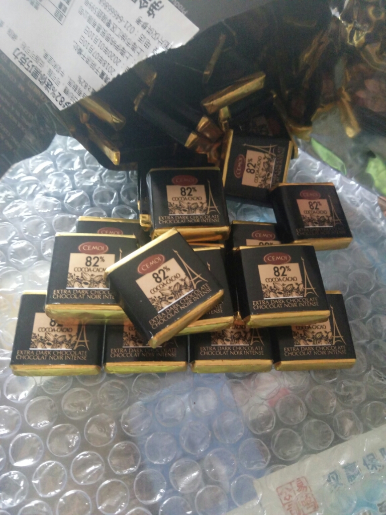 巧克力包装外有一层泡泡纸,免得运输过程中的挤压与碰撞。卖家的考虑很周到。