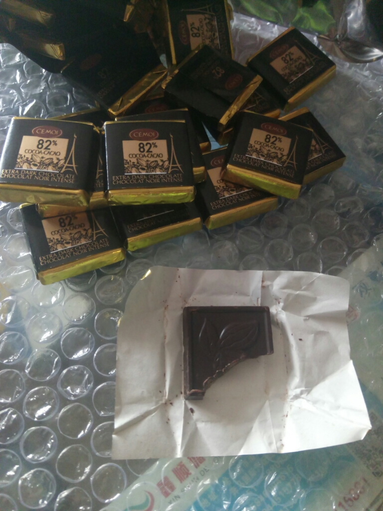打开外包装,每一片黑巧克力都包装的很严谨,没有任何的破损,不愧是法国进口的纯正黑巧克力。