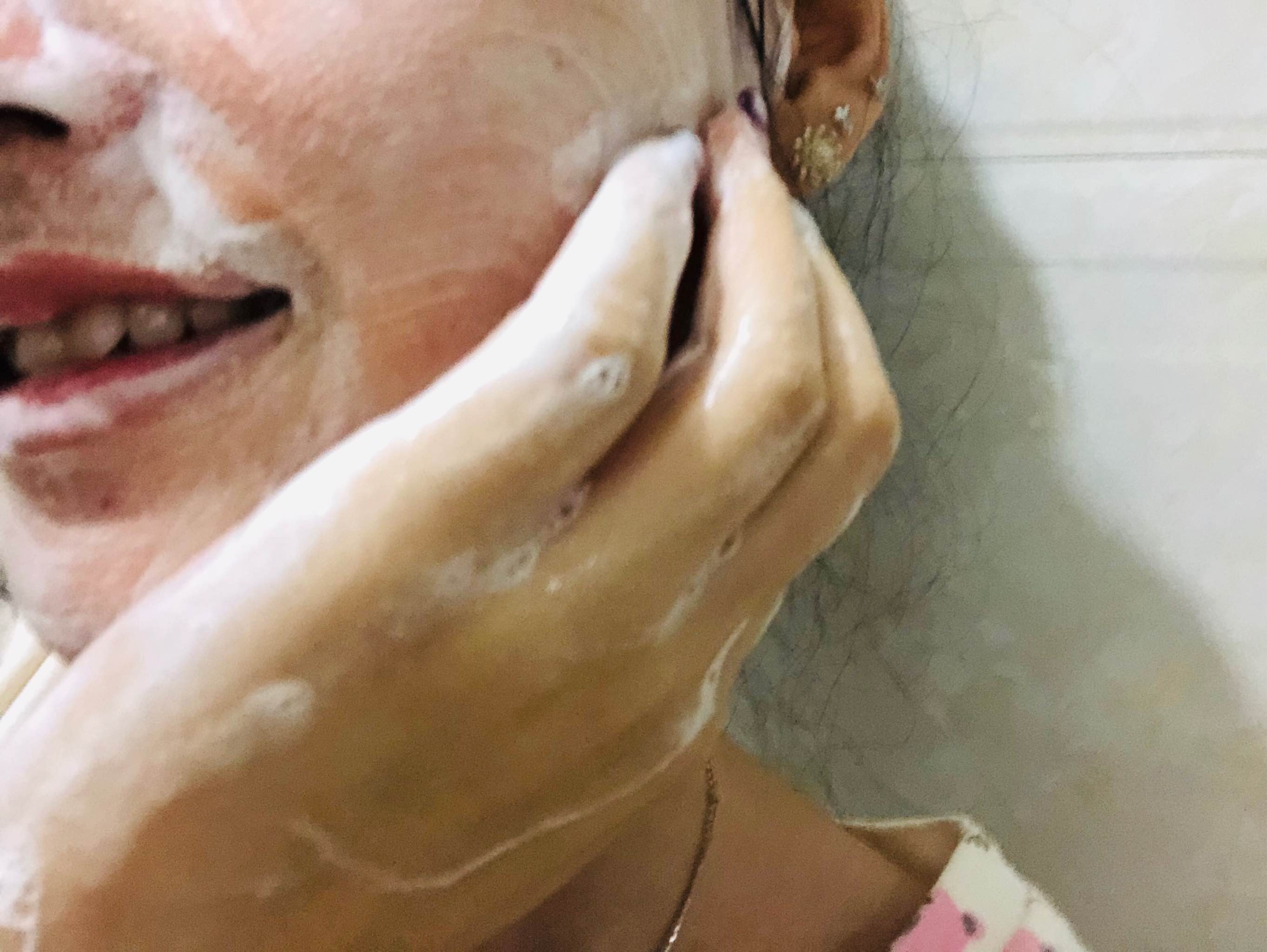 卸妆后洗面奶揉搓泡沫细腻,清洁肌肤。