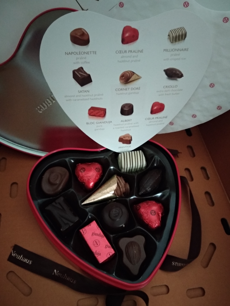 有10个形状,10种口味,做工精致。巧克力盒内有产品介绍及另外一层保鲜的纸。打开铁盖后即刻被浓香可可味包围,密封性能好。