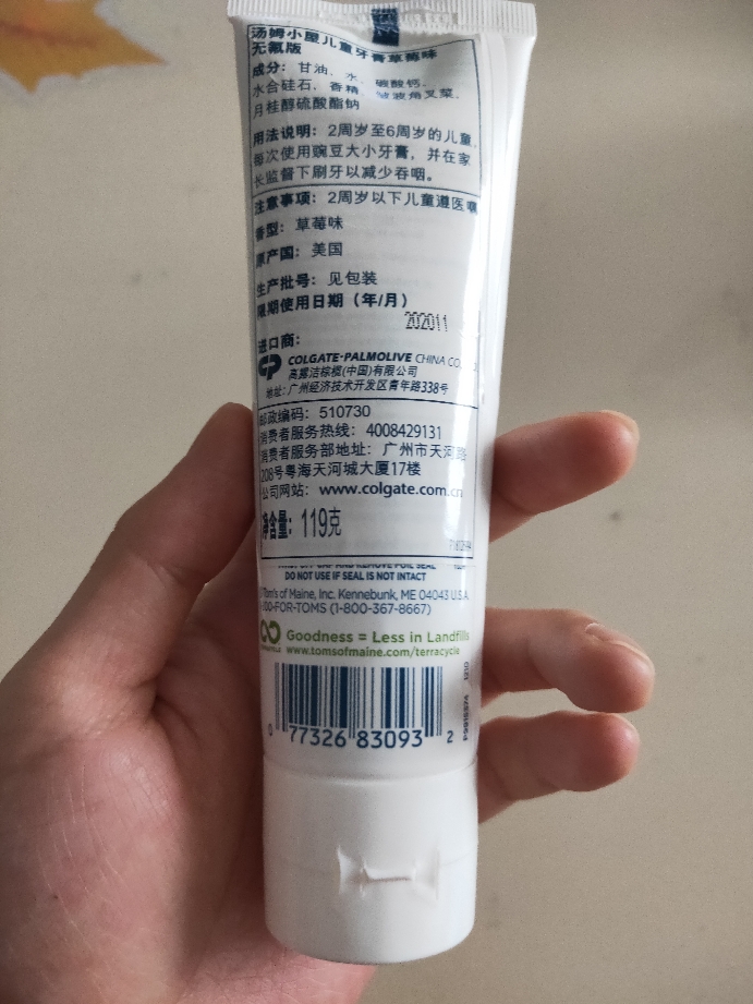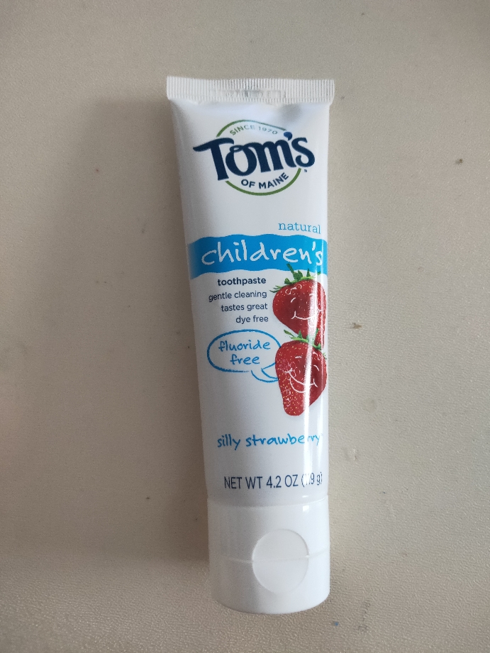 汤姆小屋儿童牙膏,这款牙膏包装很好看,草莓味,清新甜香,宝宝喜欢这个味道,适合2周岁至6周岁,不含氟。每天都坚持刷牙两次,很棒。