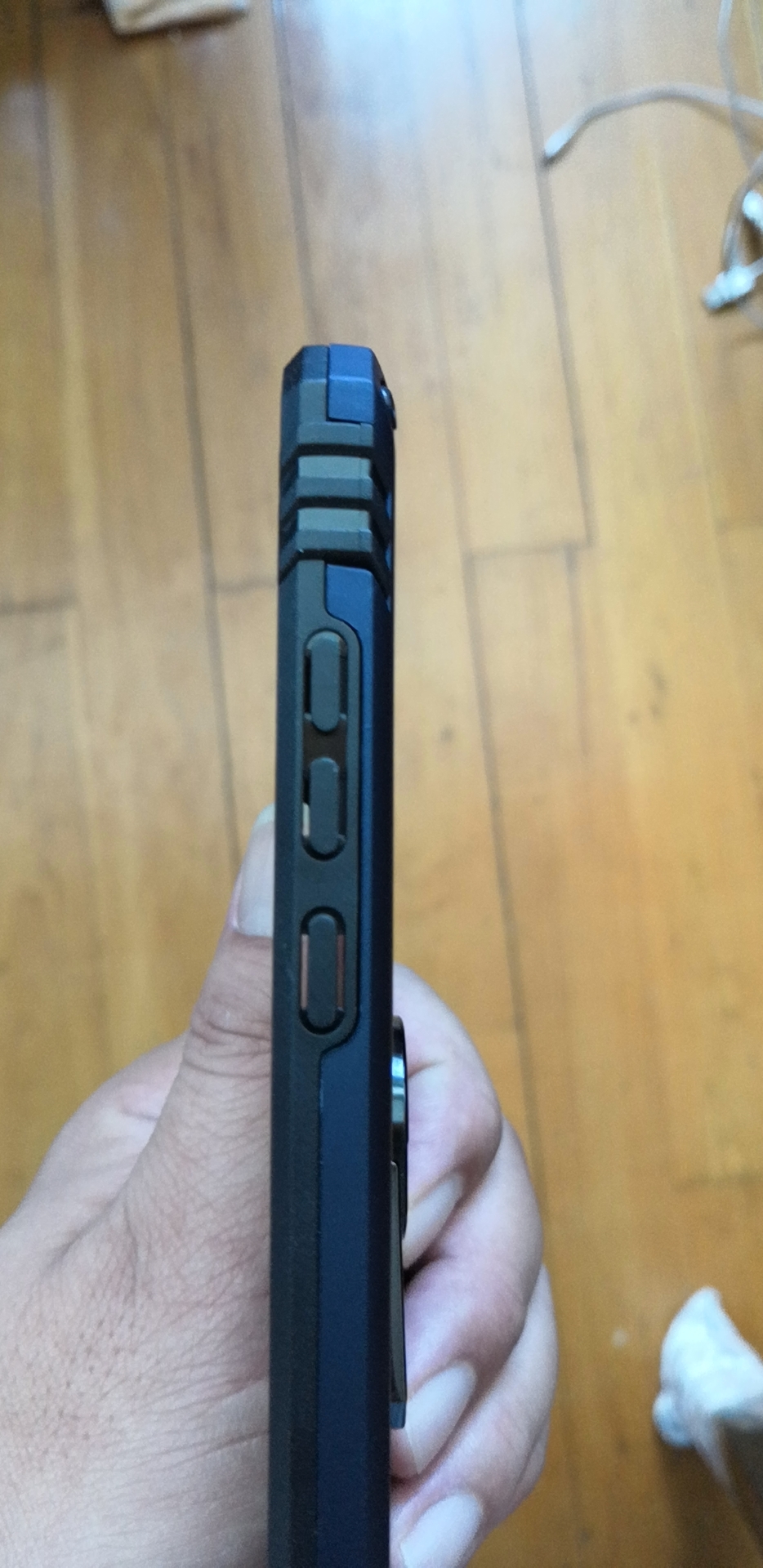 手机壳后背的这个卡扣设计一体的非常好,防止户外用手机不经意的掉落,而且手指位置很合适,还能当支架用