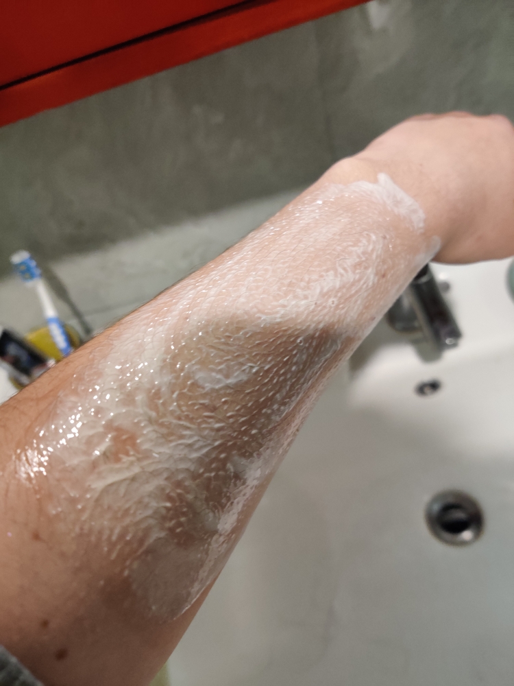 用了魔芋海绵后,效果好得多了。这是直接从魔芋海绵挤的泡沫。