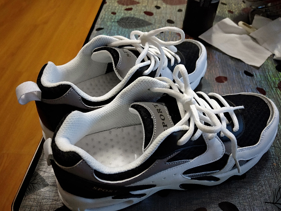 这款老爹鞋整体来说质量不错,款式新颖,穿着轻盈、舒适、透气,试穿了十天不臭脚,不磨脚,鞋底是防滑设计,运动时也可以穿,夜跑还炫亮,总之物美价廉!