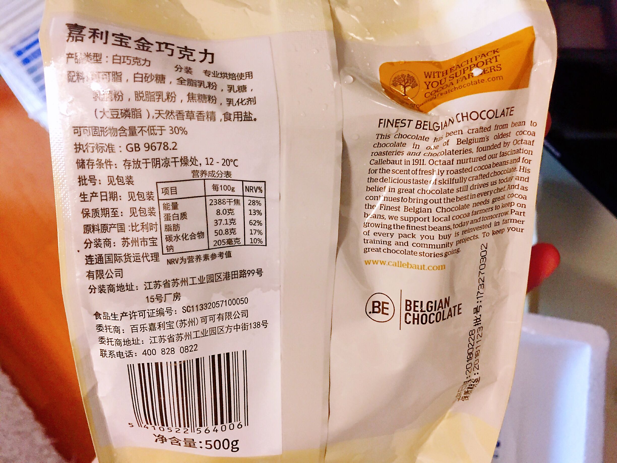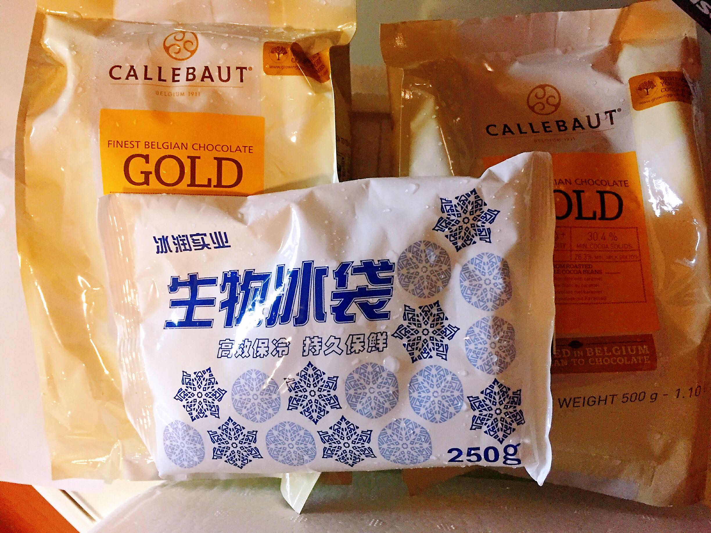 包装很仔细泡沫箱里还加了冰袋防止巧克力融化,外包装也没有任何破损,巧克力也没有破损及融化,满满两袋感觉分量十足足够做几次蛋糕淋面了。