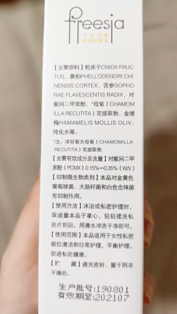 成分简单,纯植物配方,气味清新,泡沫丰富,初次使用肤感舒适,至于抗菌效果可能得经期才看得出来,但是不要把这个当成药哦