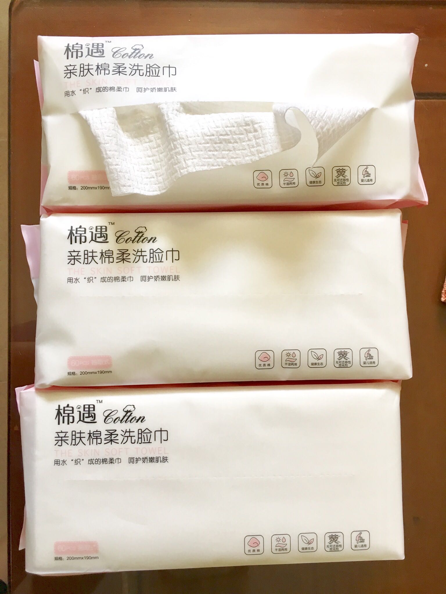 优点:使用感很好,价格不贵但是棉柔巾的质感挺高级的,打开的时候没有味道,打湿上脸也比较亲肤,感觉给小宝宝用也是可以的,看说明还是无荧光剂什么的,比较安全。重点是打湿拧干后并不会起屑,这点我特别喜欢,使用后可以擦拭桌面什么的,还挺耐用的,不过个人感觉可以用两天,因为材质比较厚实,不会很快破损,很棒,会回购!!
