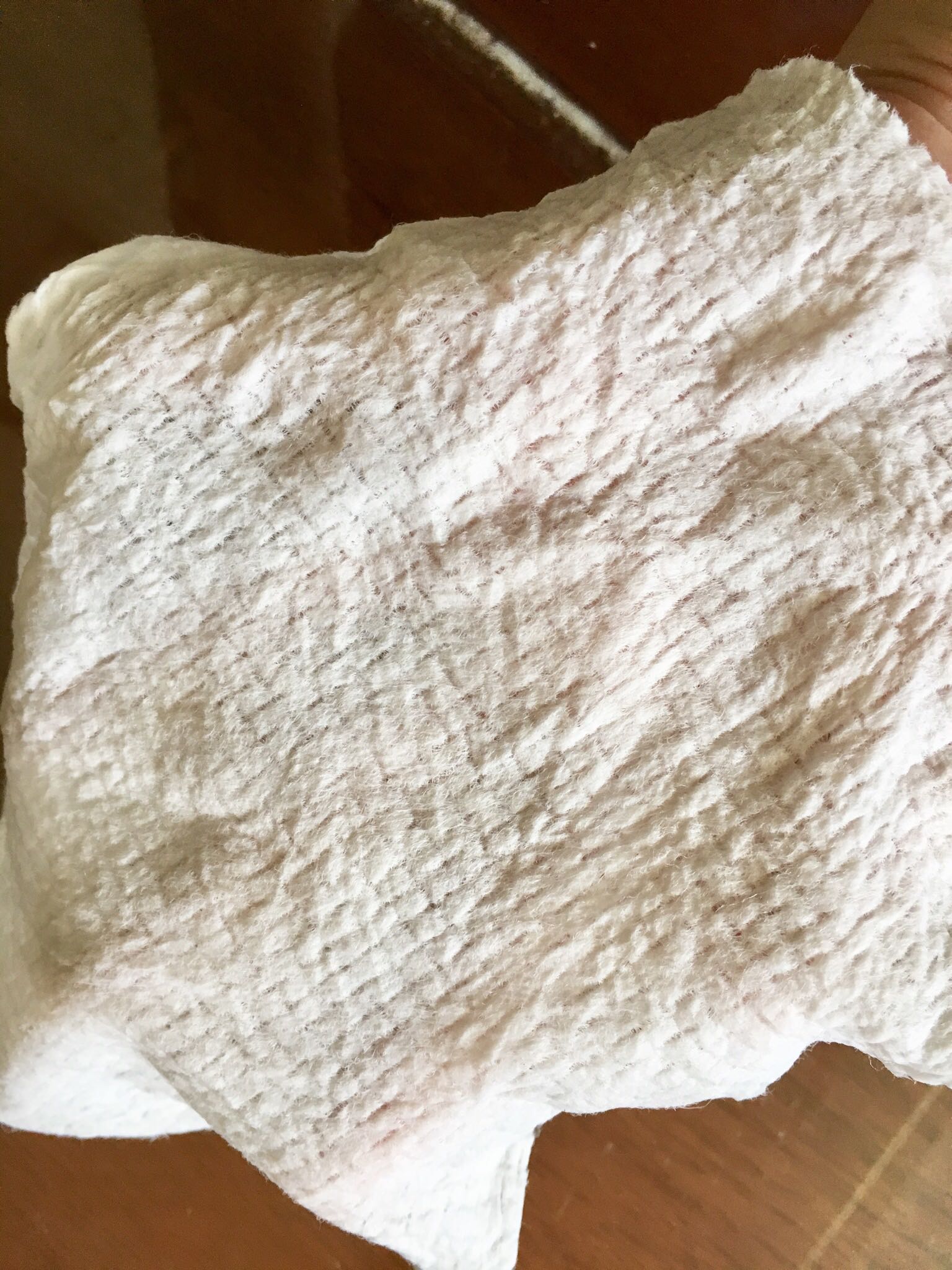 打湿之后,吸水感较好,在手上观察并不会起渣。