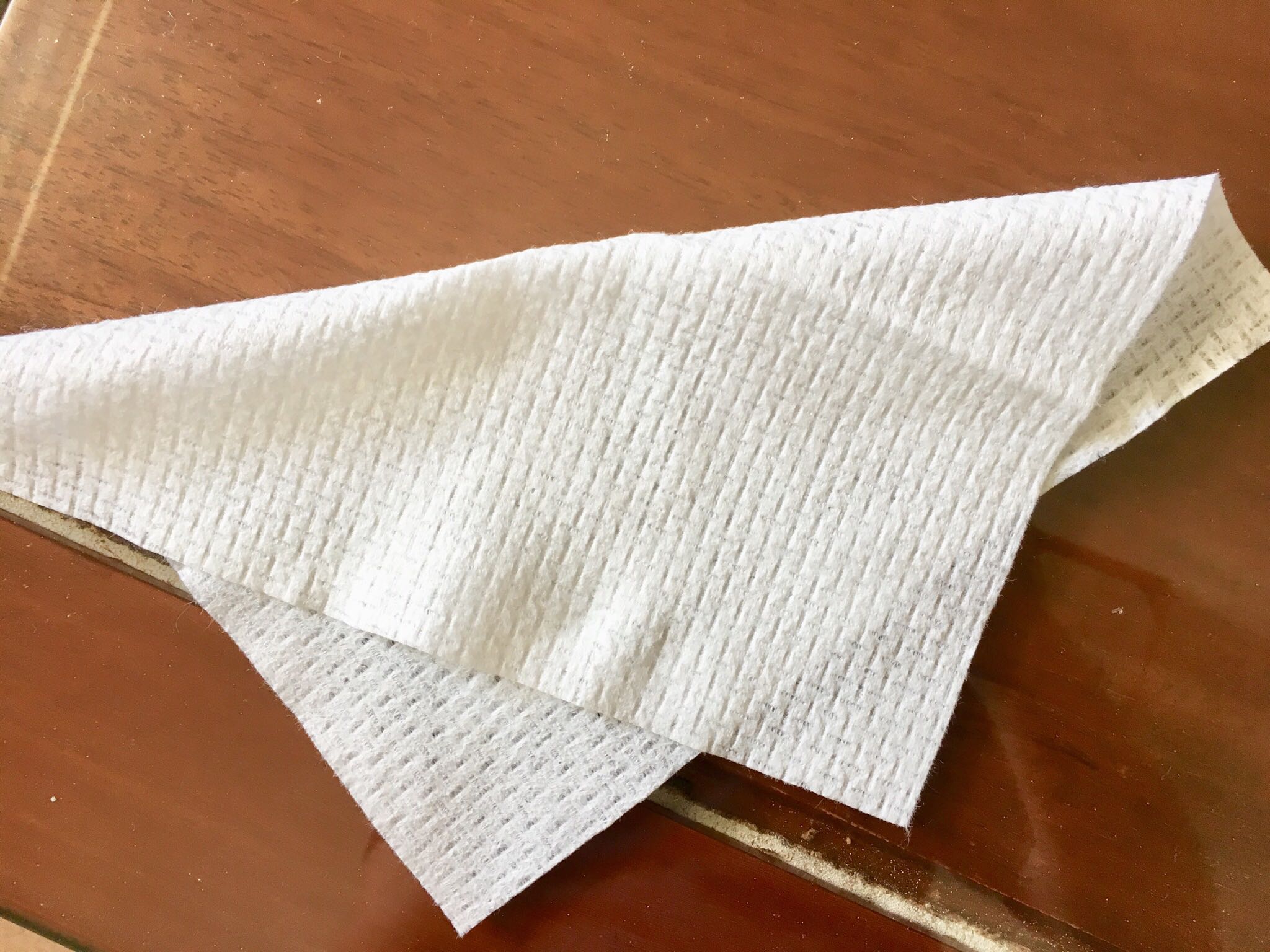 打湿后拧干擦脸,不掉屑不会有粘感,肤感比较自然,感觉拿来湿敷做面膜也是很可以的。