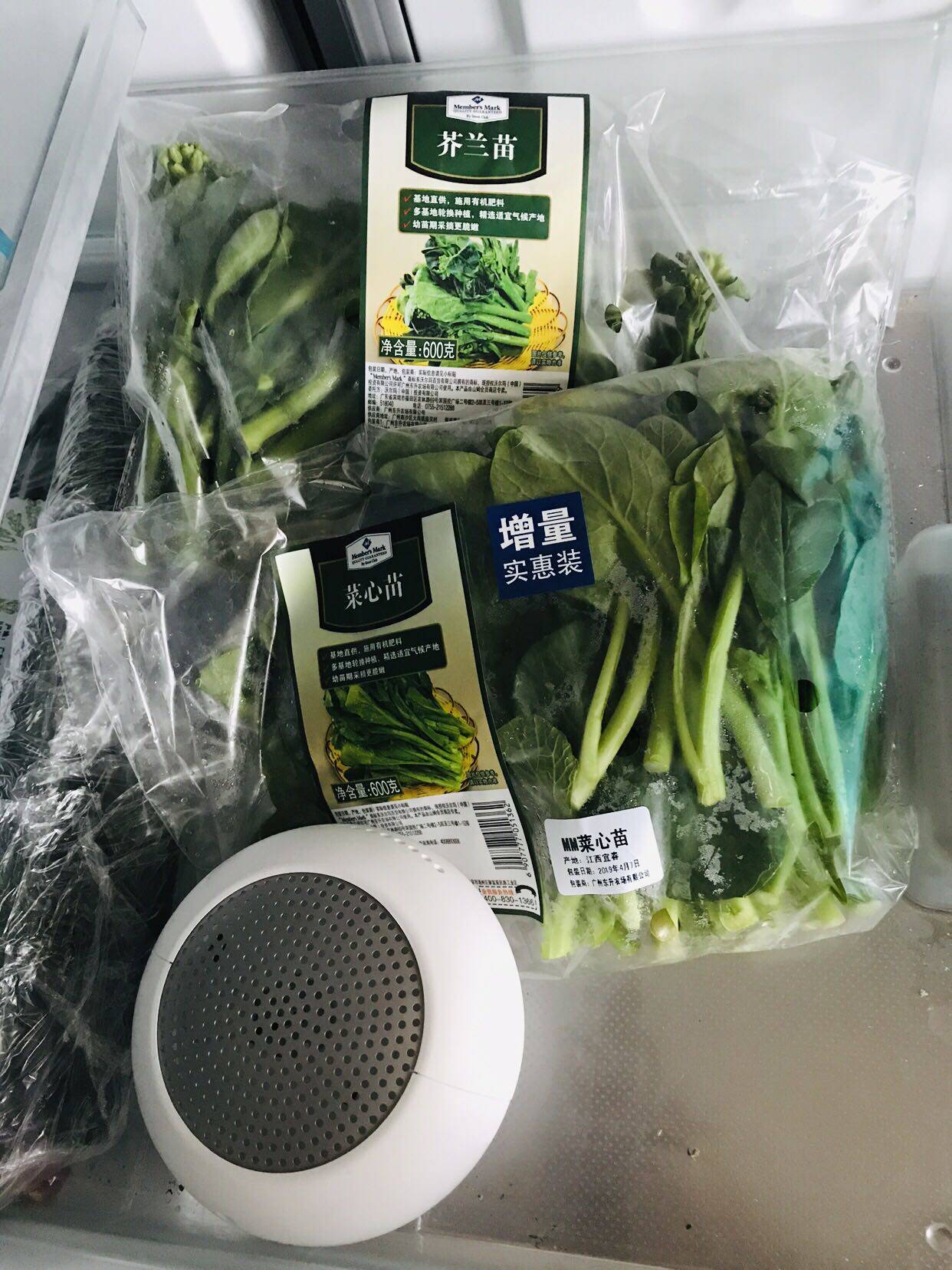 稍后又将舌尖卫士放入了零度生鲜区域,照片中是买回来已经5天的蔬菜,个人感受是对比以前没有放置舌尖卫士,蔬菜明显呈现了更为新鲜与水分充足的状态。后面还发现试用舌尖卫士后蔬菜不易出现腐败变质的情况,只是会呈现脱水的状态。