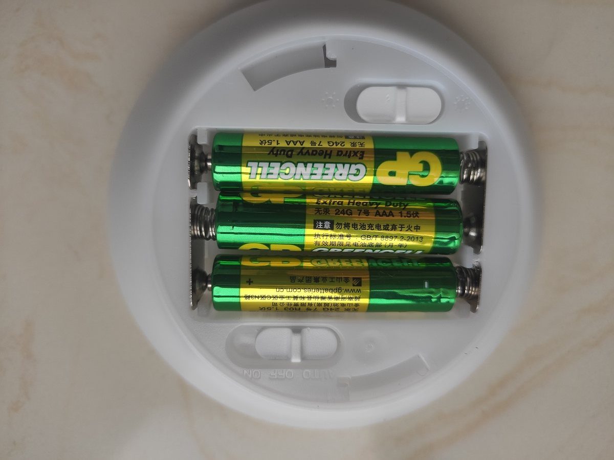 利浦酷?小夜灯使用三节7号电池,有auto、关,长开3个模式开关,灯光有强、弱2个模式。